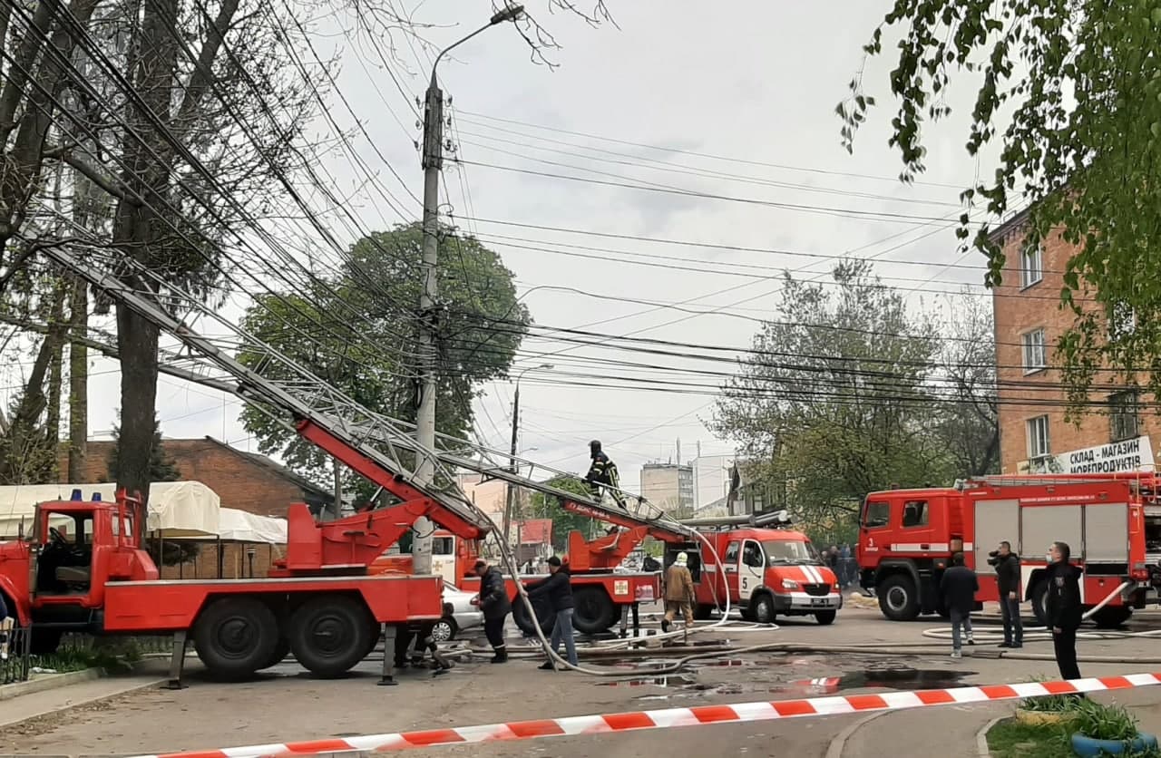 Рятувальникам вдалося запобігти перекиданню вогню на розташоване під одним дахом приміщення "Укргазбанку" та кафе. Через велику площу пожежі та сильний вітер вогонь швидко поширюється покрівлею споруди на складські приміщення, - йдеться у повідомленні.