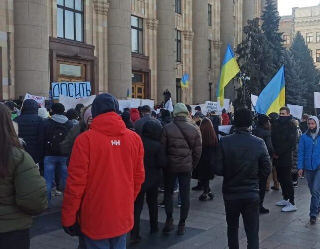 Станом на 12:20 ініціативна група з восьми людей пішла на зустріч із першим заступником міського голови Володимиром Криленком.