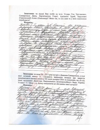 Г. Труханов: Я для себе розумію, що вказана зустріч в бюро була знайомством та можливістю Углави Г.Т. продемонструвати, що він може вирішити будь-яке питання в бюро що стосувалося мене. По ходу розмови Углава Г.Т. вказав, що говорити треба з Саакашвілі і його людьми. Саме через деякий час відбулась вище згадана зустріч в Польщі, при якій мені вказали на необхідність надати 500 тис доларів, щоб не було проблем з НАБУ. Я для себе прийняв рішення нічого не давати бо не було за що. Через деякий час мені було повідомлено про підозру у справі Краяну. Саму підозру повідомив Углава Г.Т. під час нашої зустрічі в приміщенні бюро.