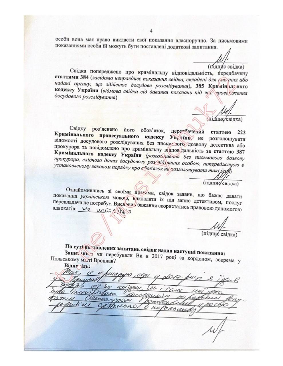 Згідно з протоколом допиту, який проводив прокурор другого відділу САП Станіслав Броневицький в рамках кримінального провадження №52024000000000266 від 31.05.2024 року за ч.4 ст.368 КК України, відомо наступне: