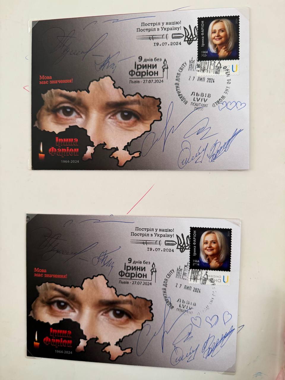 Укрпошта випустила марку на честь загиблої мовознавиці Ірини Фаріон. Гасіння марки та конверту відбулося у Львові на дев'ятий день після її смерті.