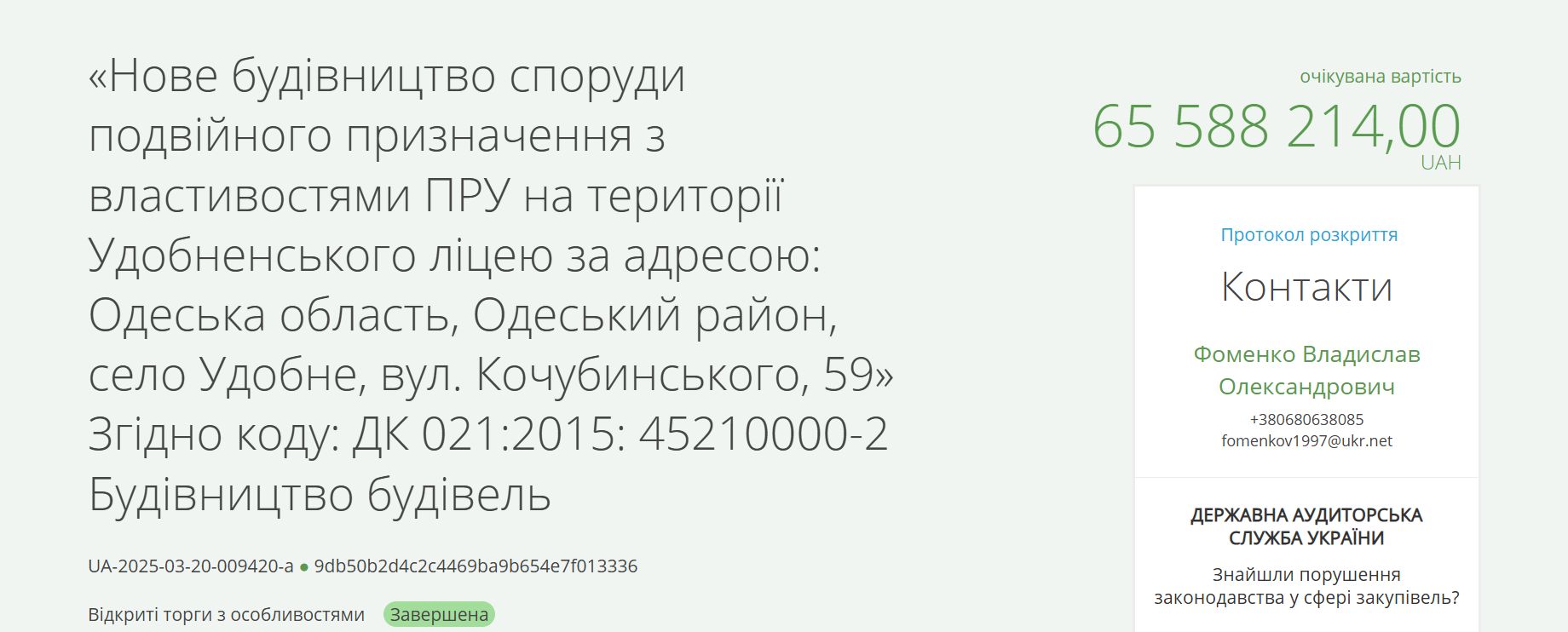ТОВ "Буд-Марка" було єдиним учасником закупівлі. Умови тендера вимагали надання аналогічного контракту на суму не менше 25% від очікуваної вартості, наявності спецтехніки (зокрема трьох екскаваторів і самоскида), а також профільного персоналу.