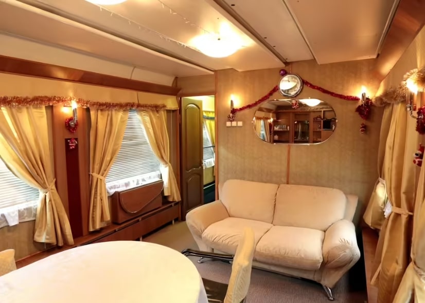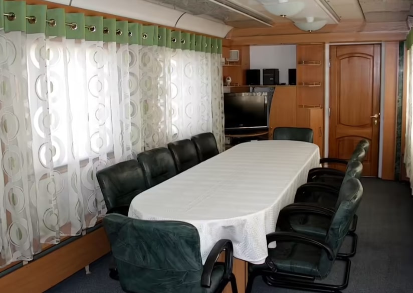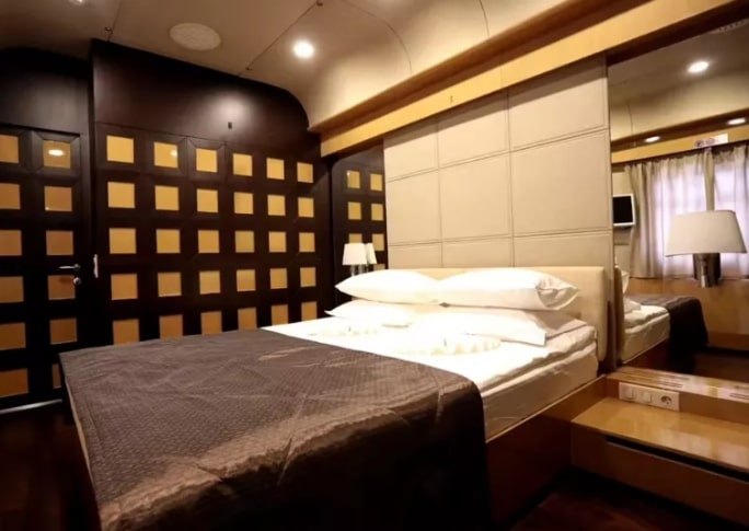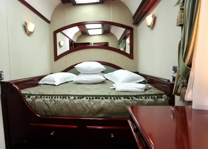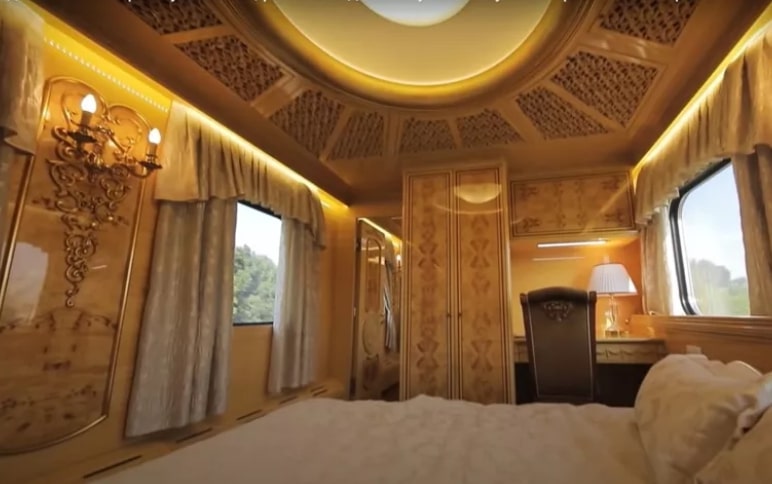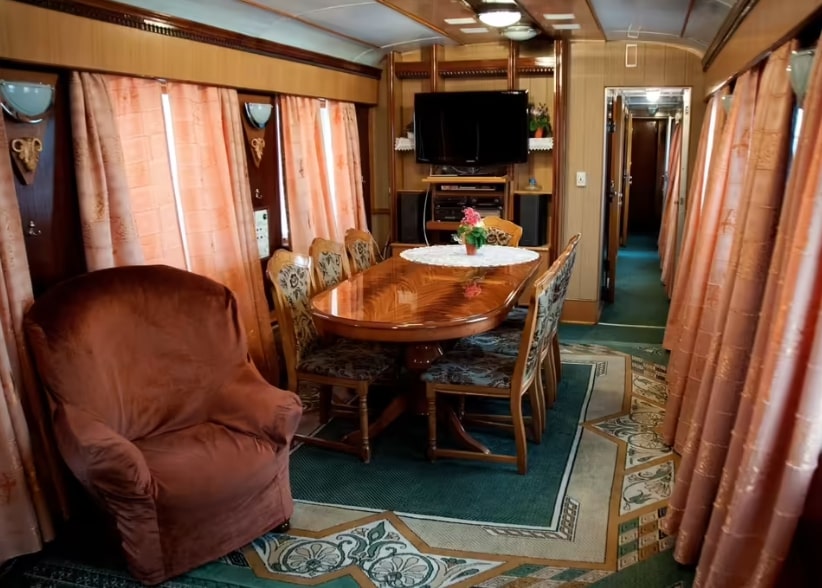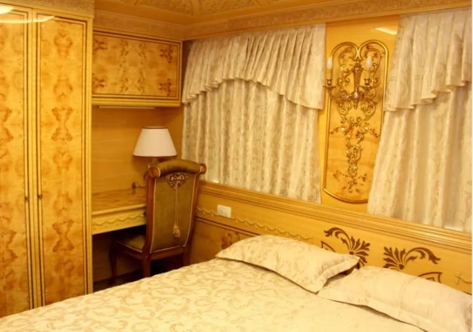 У цих вагонах передбачені спеціальні купе для охорони та службового персоналу. Всередині і вишукані люстри, і посуд високої якості, аби пасажири відчували себе максимально комфортно.