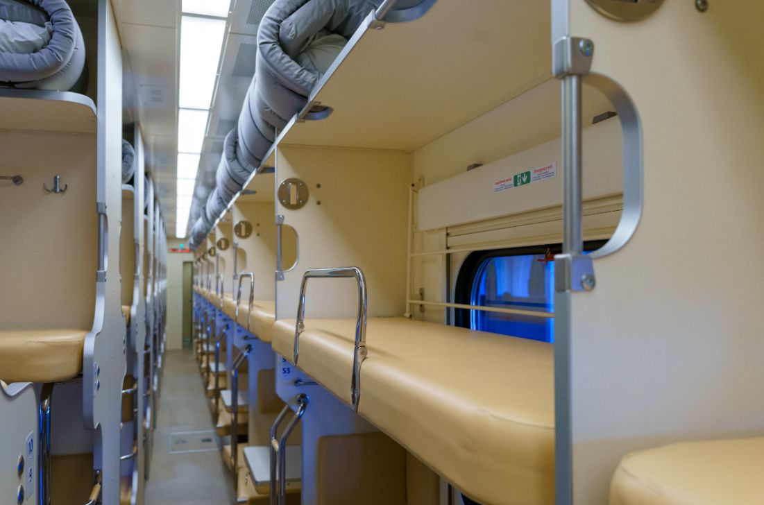 Вагони зберігають традиційну конфігурацію, проте отримали низку конструктивних оновлень. Серед них — м’які спинки на полицях, перегородки для приватності, індивідуальні столики, нове освітлення, розетки з USB- і Type-C-роз’ємами, вакуумні туалети, сповивальні столики, а також елементи доступності для людей з порушеннями зору.