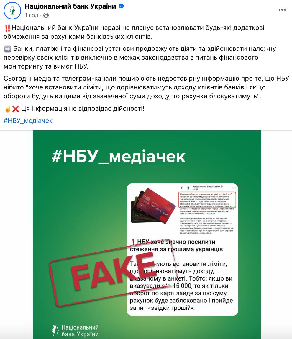 Днями Національний банк України порадив банкам встановити клієнтам ліміти на рівні доходу, який вони вкажуть в анкеті з урахуванням усіх банків відразу, але заявив про фейкову інформацію.