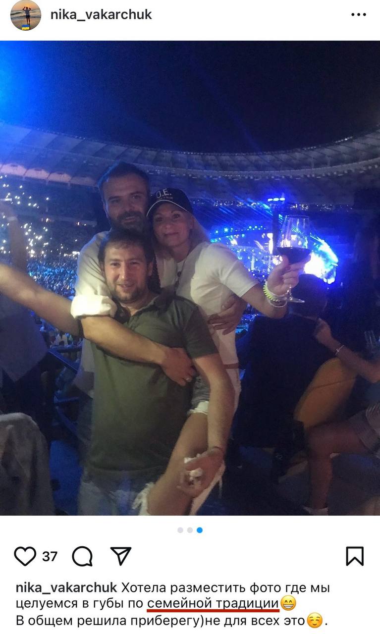 Ну і звичайно відвідувала концерти "Океану Ельзи" разом з братом Вакарчуком, Олегом, який проходив військову службу у Львівському обласному ТЦК та ще з одним родичем, який у соцмережах записаний, як Тед Вакарчук, який проживає в Москві.