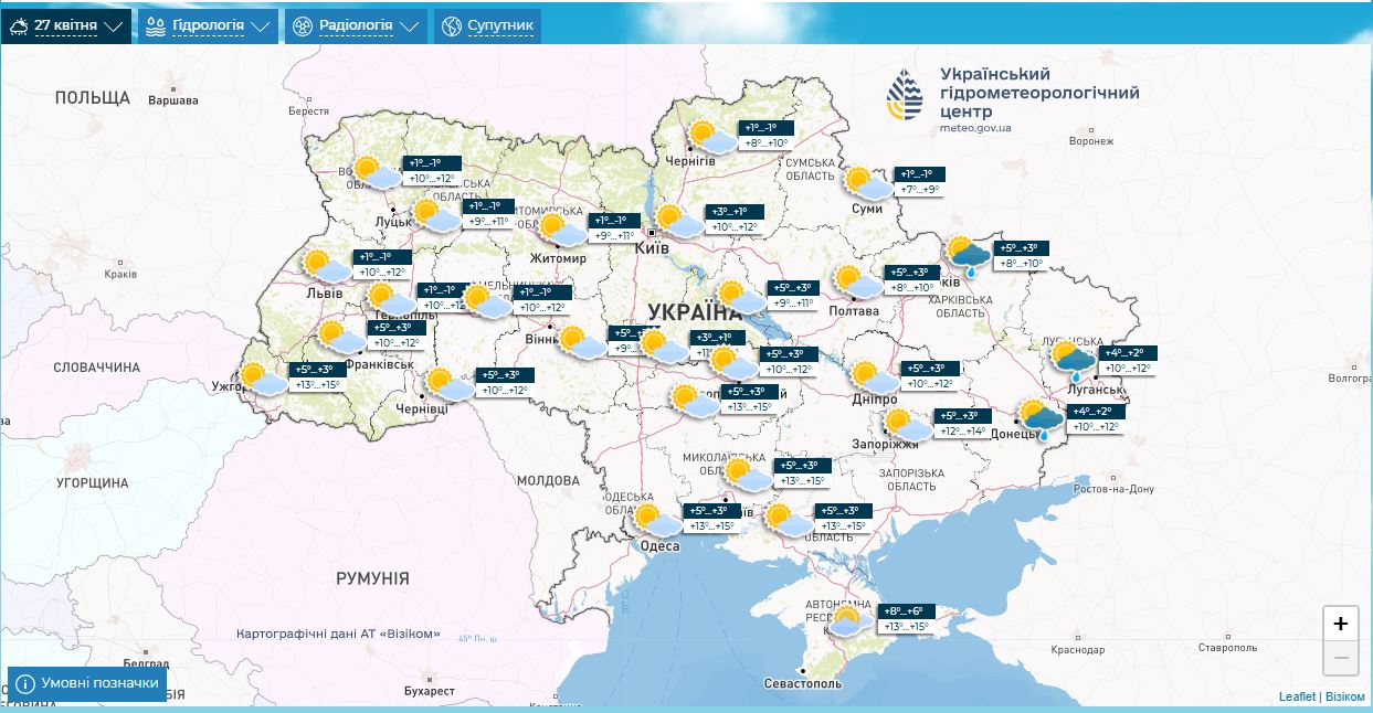 Нагадаємо, що у суботу, 26 квітня, погода в Україні буде нестабільною: більшу частину території охоплять дощі, у деяких регіонах — з грозами. У Карпатах прогнозують заморозки до -4°C, натомість південні області порадують теплом до +24°C.