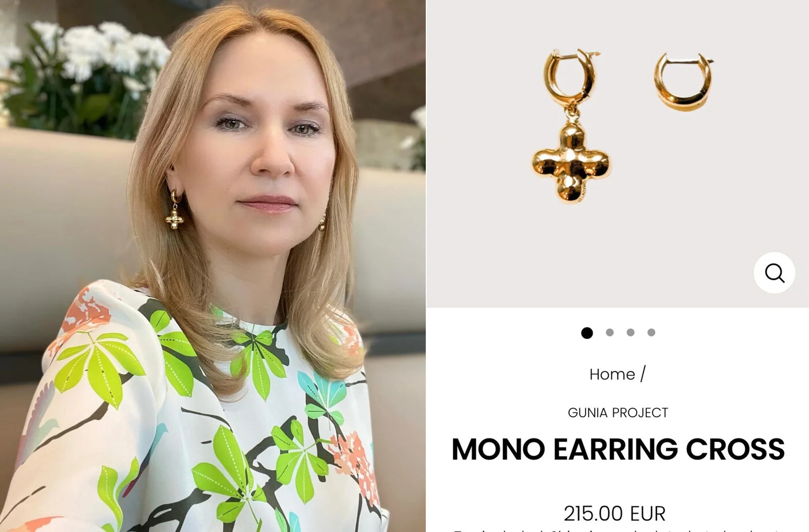 Також Олена Кондратюк покрасувалася у сережках бренду Gunia Project, засновники якого об’єднують традиційні українські орнаменти та форми з сучасним дизайном. Сережки як у віцеспікерки коштують 215 євро. Але для свого образу їх напевно довелося придбати дві пари, адже оригінал складається з асиметричних прикрас - одна у формі хрестика, інша - сережка конго. А депутатка “Батьківщини” носить пару сережок-хрестиків.