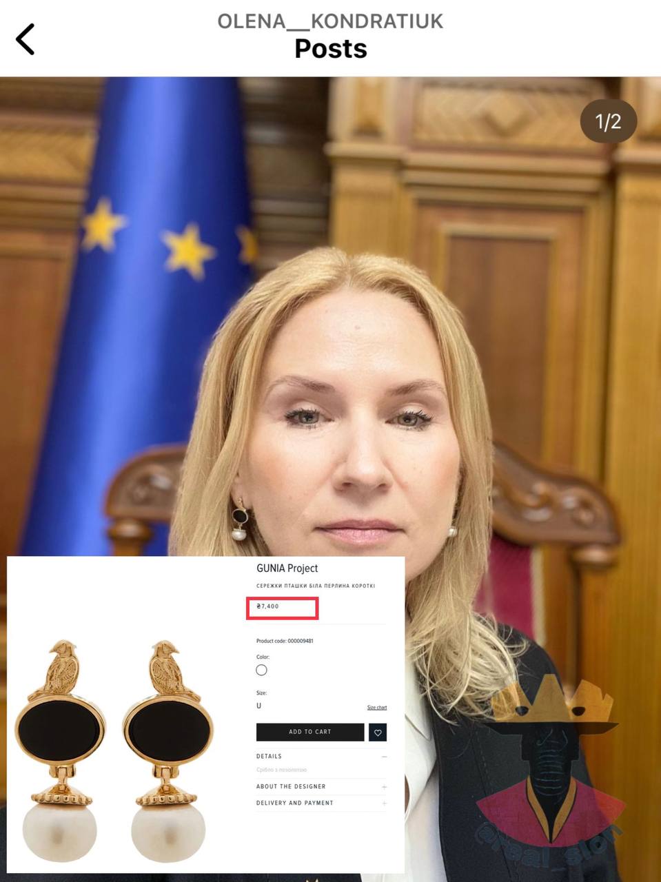 Як ми вже знаємо, Кондратюк носить і українське, як от футболка від Ivan Frolov за €300, сережки Gunia за ~€190