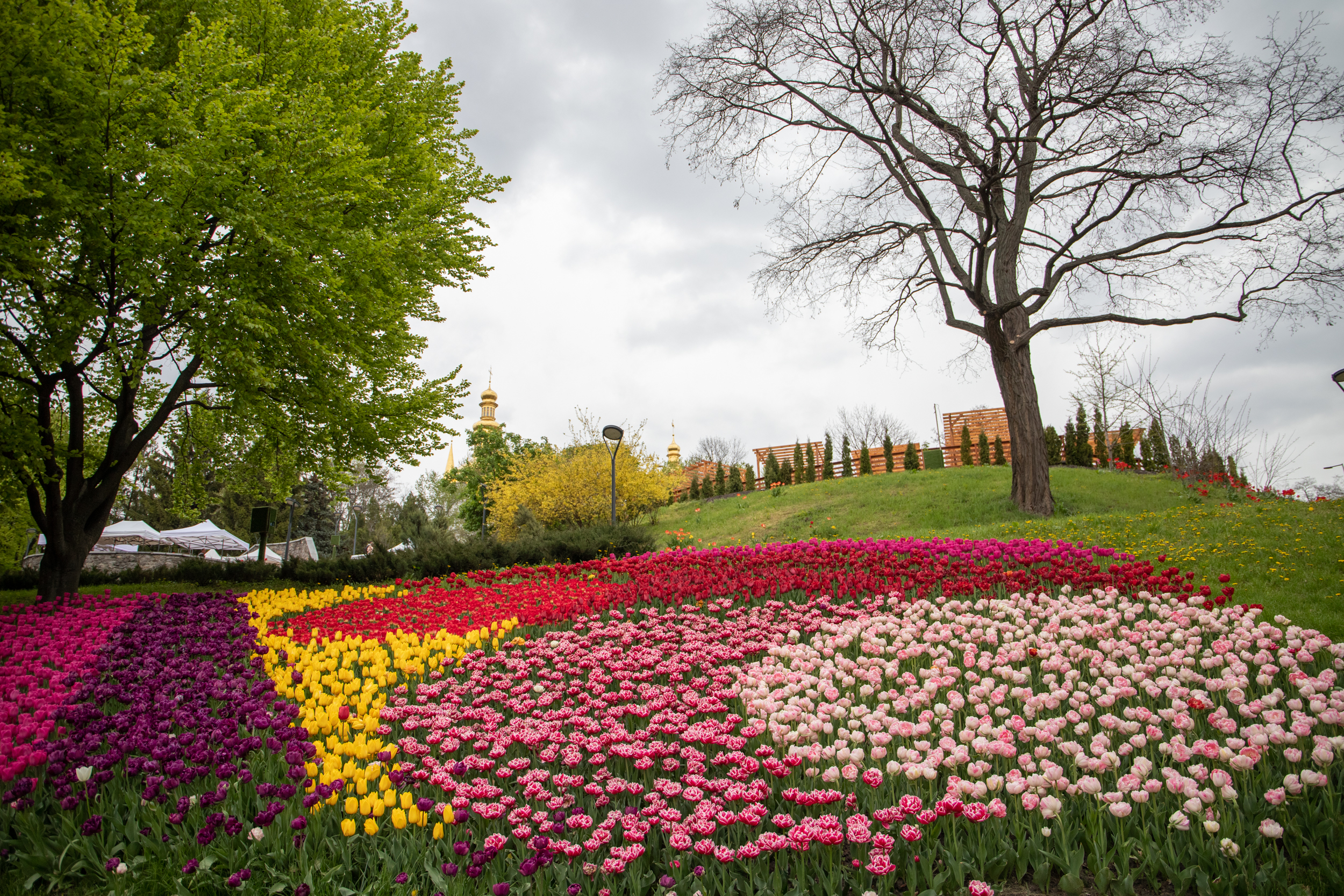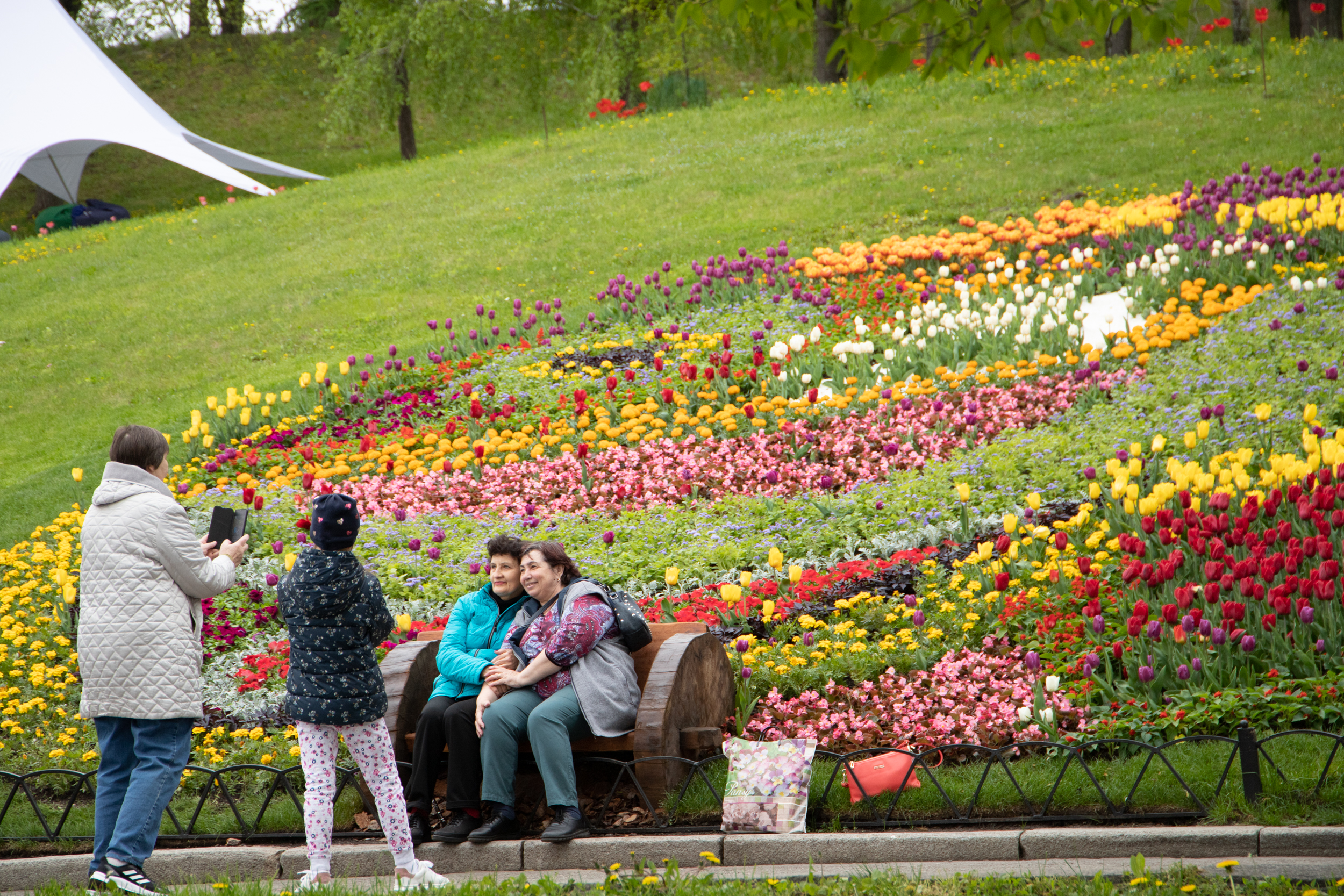 На Співочому полі у Києві до 23 травня працюватиме виставка з понад 700 тисяч квітів.