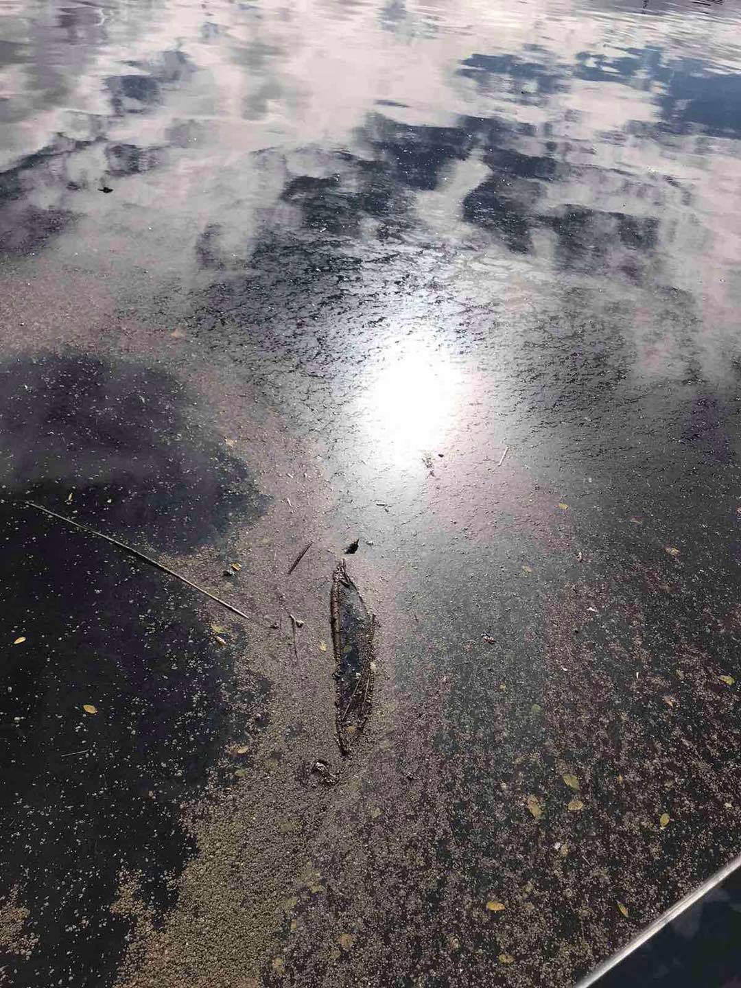 У групі "Життя Оболонського Району та Мінського Масиву" у Фейсбуці, повідомляється, що "у воду злили якусь погань: поздихала риба, навіть раки полізли з дна і виповзають на берег.
