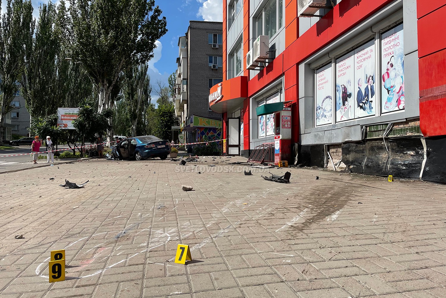Як повідомляє місцеве видання svetlovodsk.com.ua, водійка автомобіля Mazda 6, рухаючись від центральної площі міста у напрямку парку, втратила керування та на високій швидкості з’їхала на парковку біля торгівельного центру на вул. Героїв України, 27. Після цього авто знесло бетонну конструкцію водопровідного колектору, вилетіло на тротуар, де стояла дівчина 1994 року народження.
