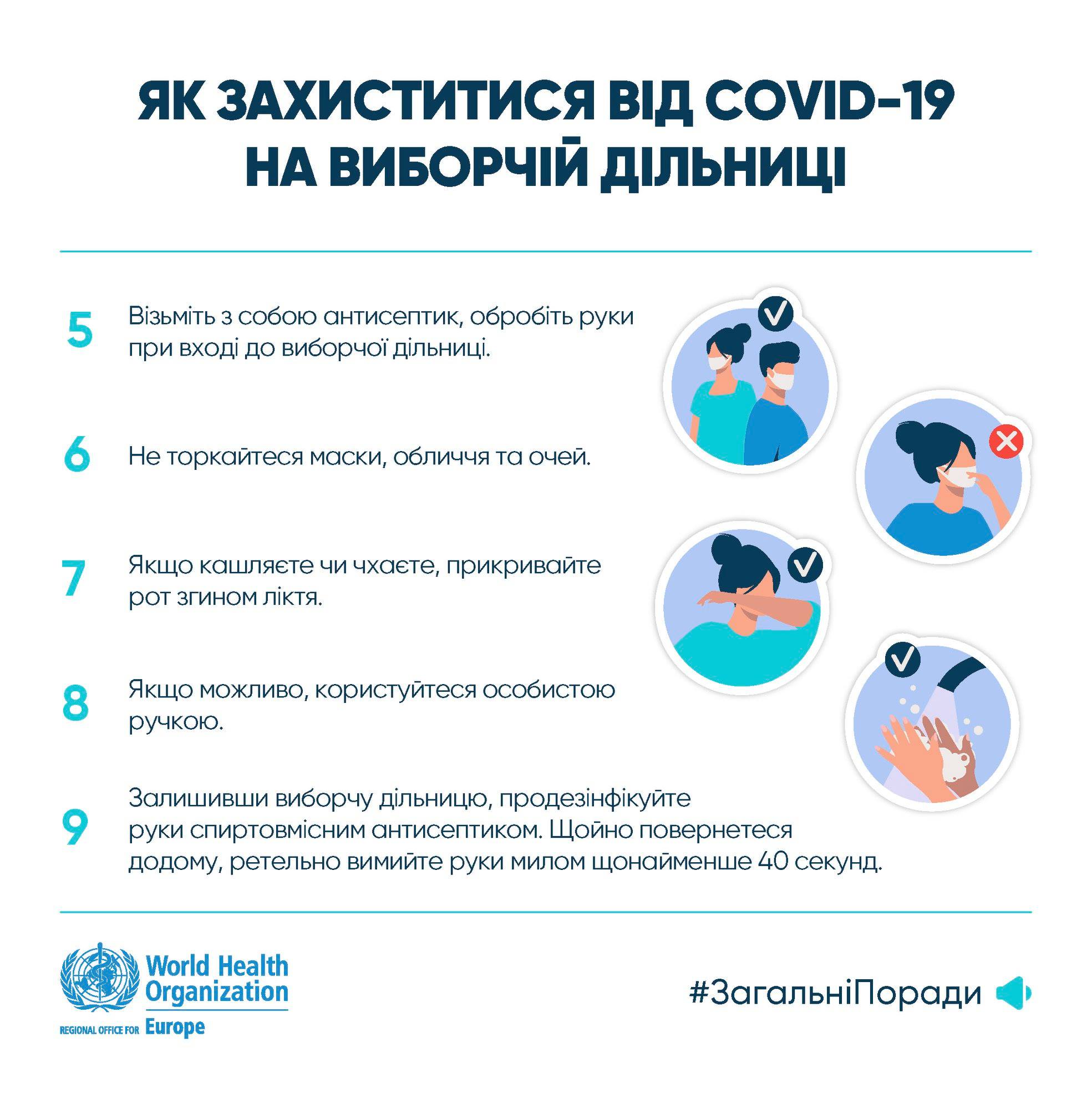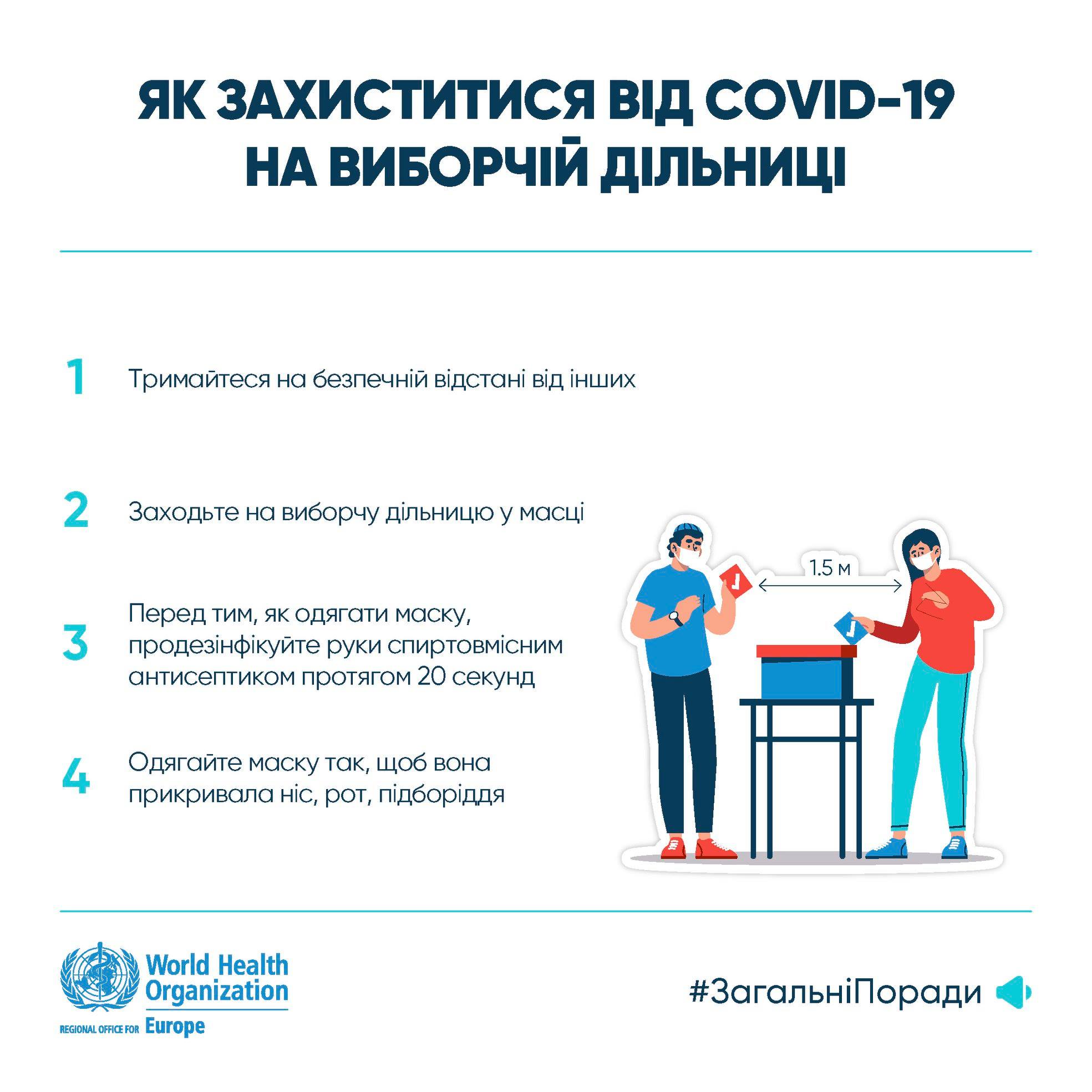 Так, серед загальних порад, як захиститися від COVID-19 на виборчій дільниці, наступні: