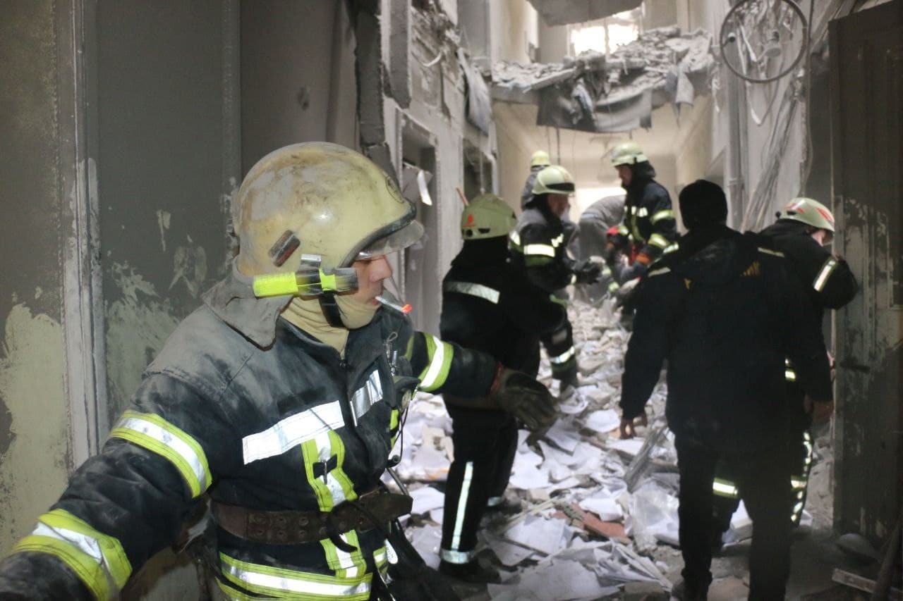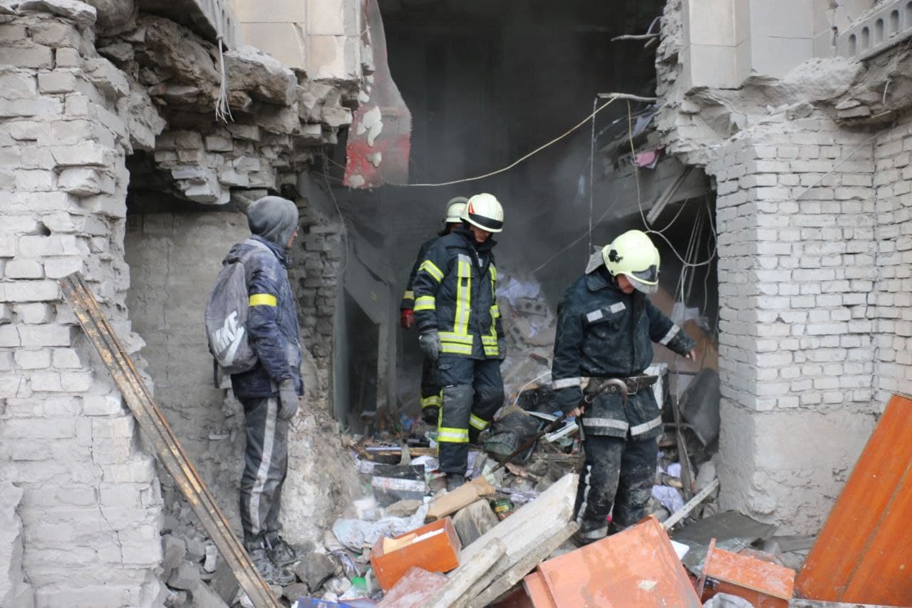 Як повідомили у Службі порятунку, внаслідок авіаудару між 2 та 3 під’їздом житлового будинку загинуло восьмеро людей. Ще шестеро постраждали. Вдалося врятувати 38 осіб.