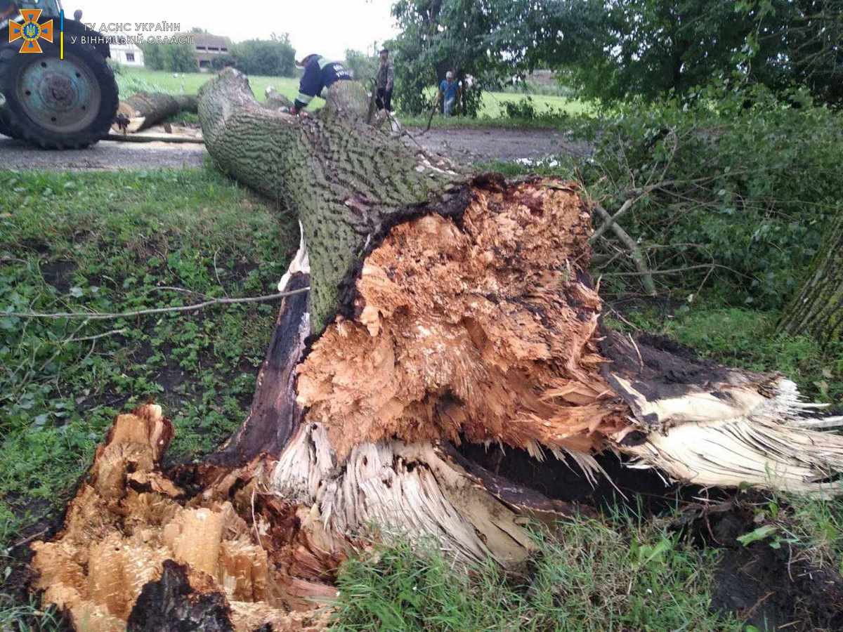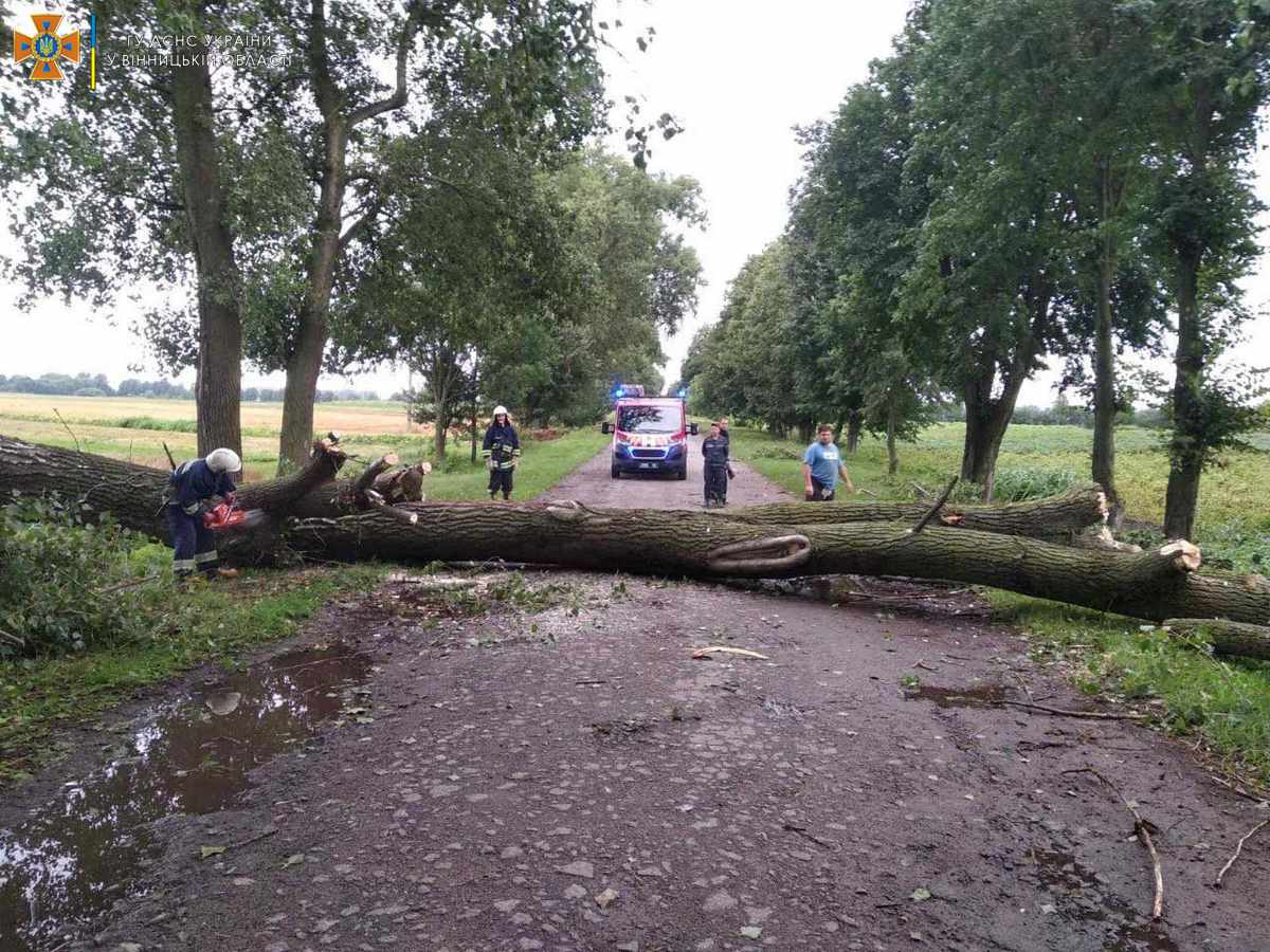 У Державній службі з надзвичайних ситуацій у Вінницькій області зазначили, що в ніч з 5 на 6 серпня, внаслідок поривчастого вітру та рясних опадів на території Вінницької області, а саме: у Вінницькому, Жмеринському, Тульчинському, Хмільницькому, Могилів-Подільському та Гайсинському районах на автошляхи були повалені десятки дерев, що перешкоджали руху транспорту. Лише за ніч рятувальники прибрали з автошляхів 62 дерева.