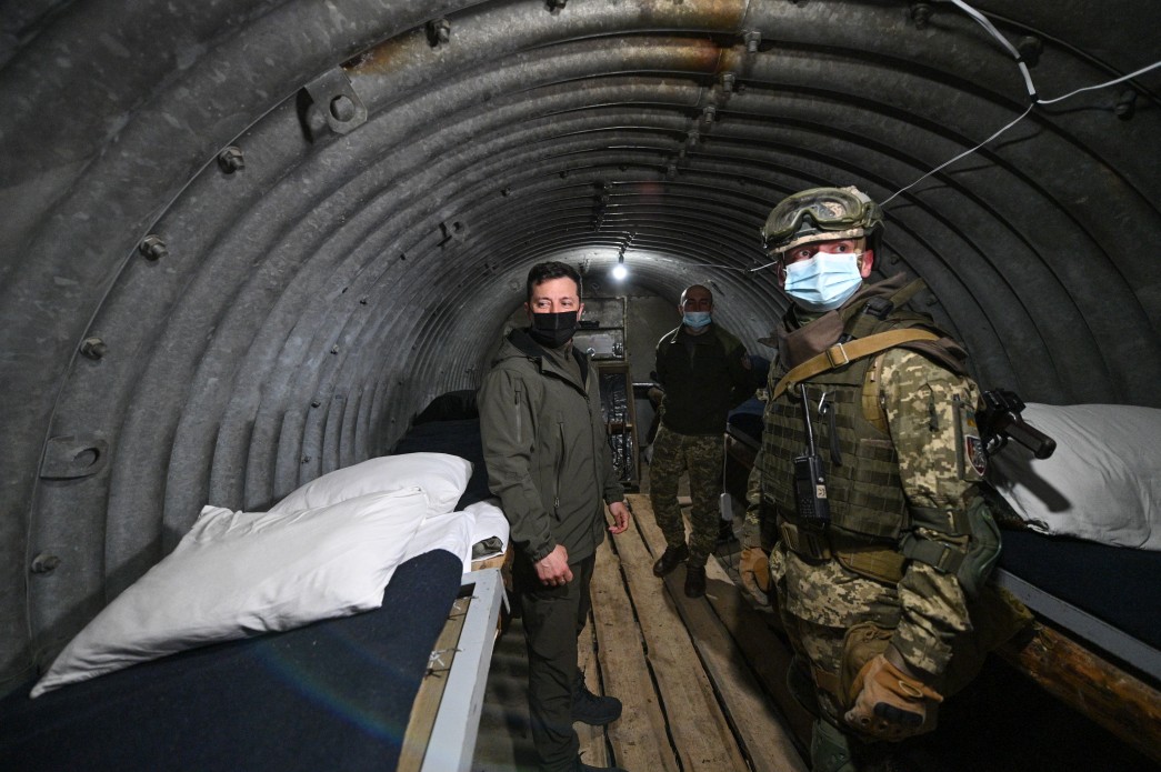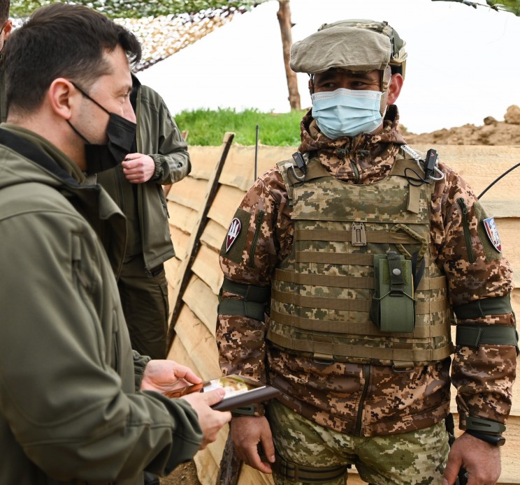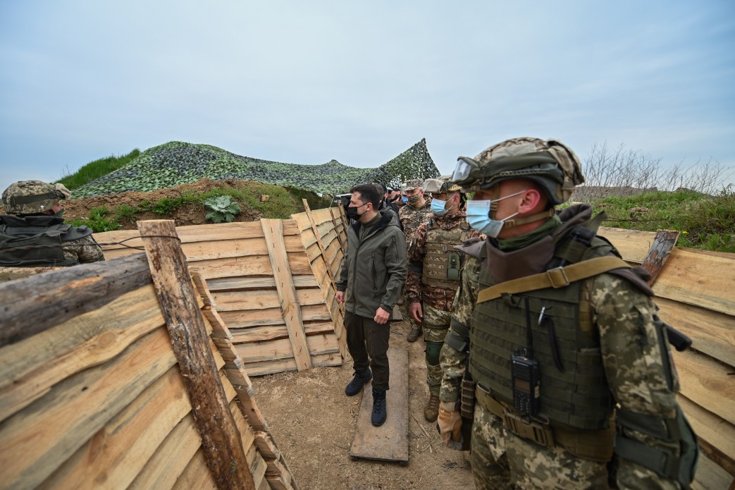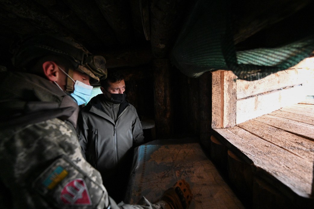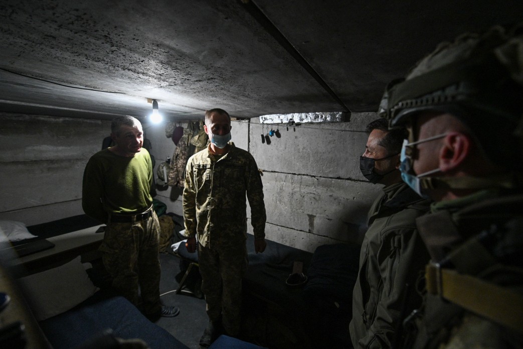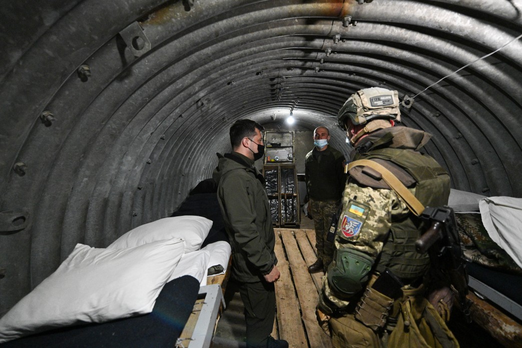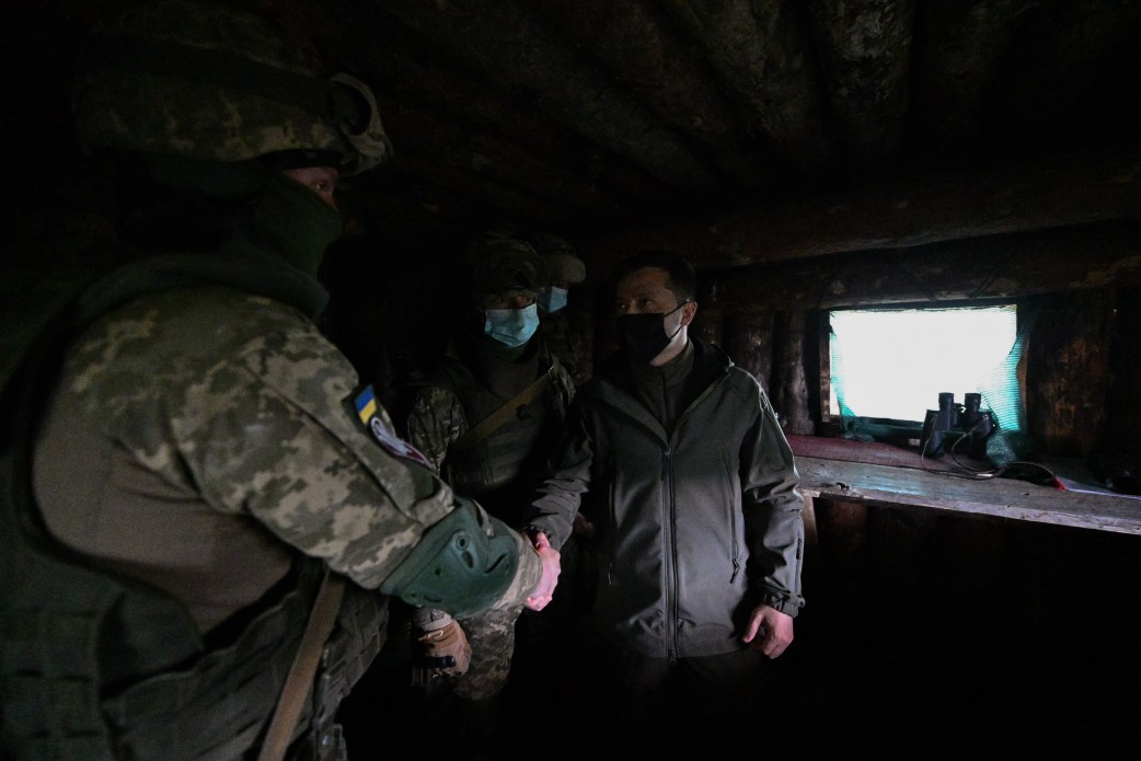 На передовій позиції Зеленський оглянув бліндаж та окопи й коротко поспілкувався з військовослужбовцями, які несуть тут службу. Президент поцікавився рівнем забезпечення та умовами перебування бійців на позиціях.
