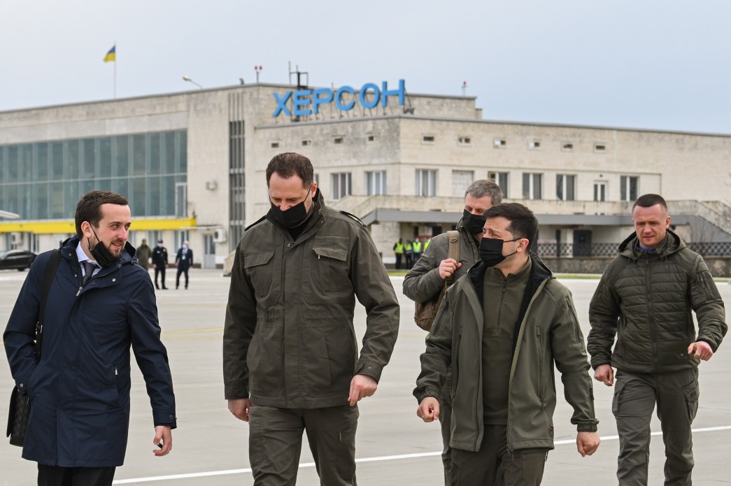 Як повідомляє Офіс президента, під час робочої поїздки до Херсонської області Зеленський відвідав передові позиції військовослужбовців та ознайомився з оперативною ситуацією та системою укріплень на адмінмежі з АР Крим.