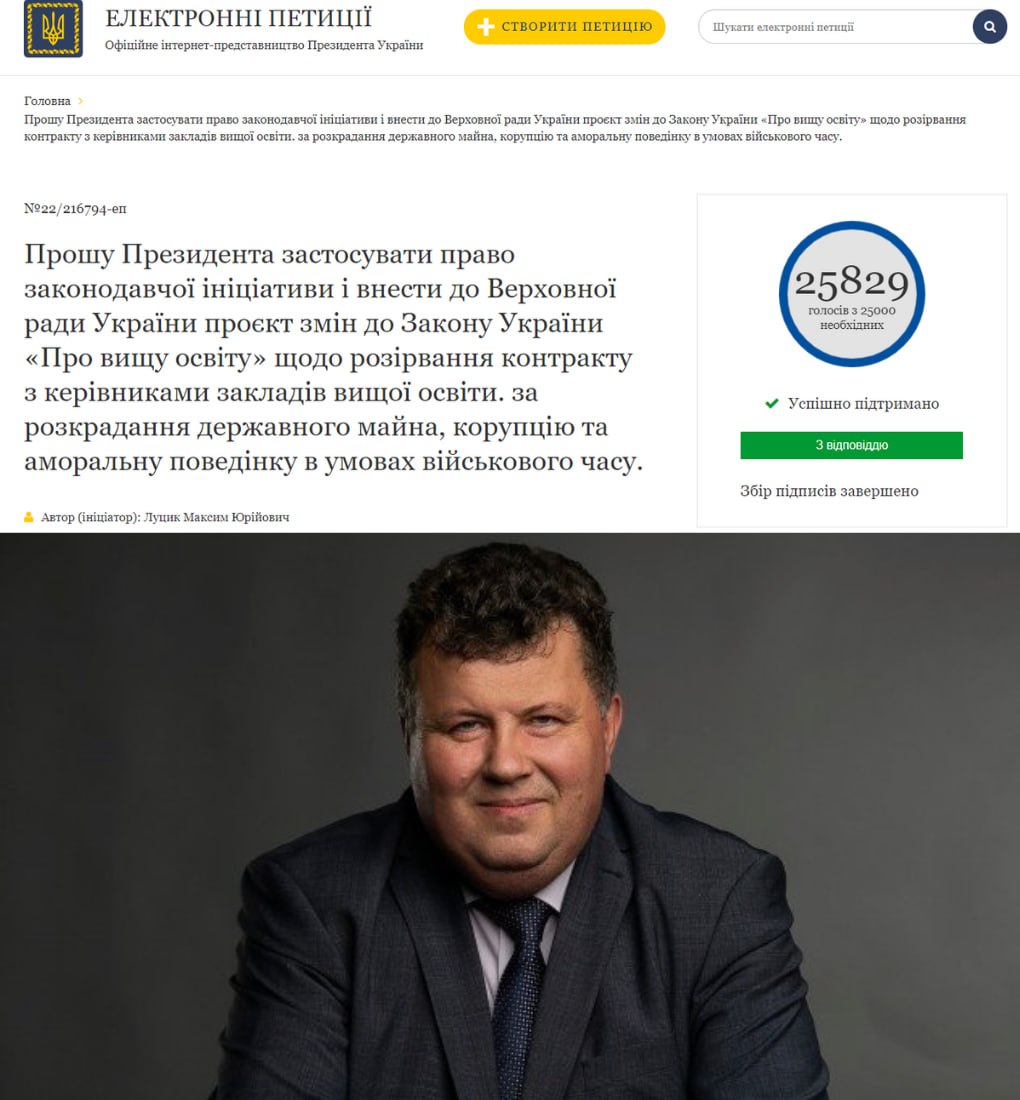 Як відомо, петицію про звільнення скандального ректора ініціював військовослужбовець та випускник університету Максим Луцик. Звільнення Володимира Бугрова та очищення університету від корупції є також вимогою студентських організацій з різних міст України.