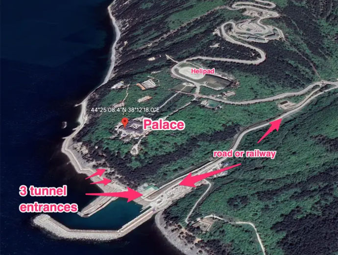 Журналісти опублікували схеми та креслення підземної частини "палацу Путіна" у Геленджику Краснодарського краю РФ. На них видно, що під будівлею на глибині близько 50 метрів розташовані укріплені приміщення та тунелі.