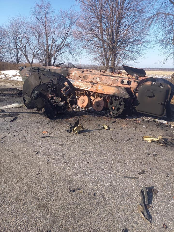 Тим часом головне управління розвідки Міноборони повідомляє, що під час ведення бойових дій в Броварського району Київської області зазнала значних втрат в особовому складі та техніці бальйонно-тактична група (БТГр) 6 танкового полку (Чебаркуль) 90 танкової дивізії Центрального військового округу. Зокрема, ліквідовано командира полку полковника А.Захарова.