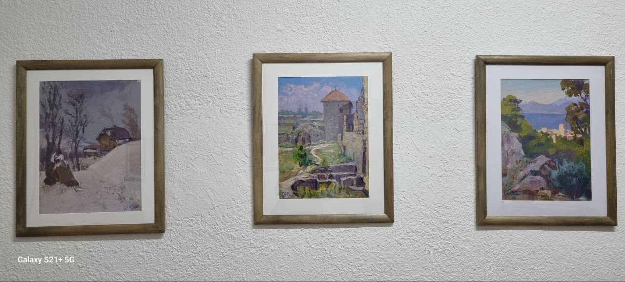 В отдельном зале размещены работы Ивана Салевича. Мы с ним давние друзья, и он предложил свои работы тогда, когда прочитал в газете о том, что Виолетта сама делает fpv дроны. Передал серию своих пейзажей, которые стали очень хорошо продаваться. Пришлось даже еще добавить работ.