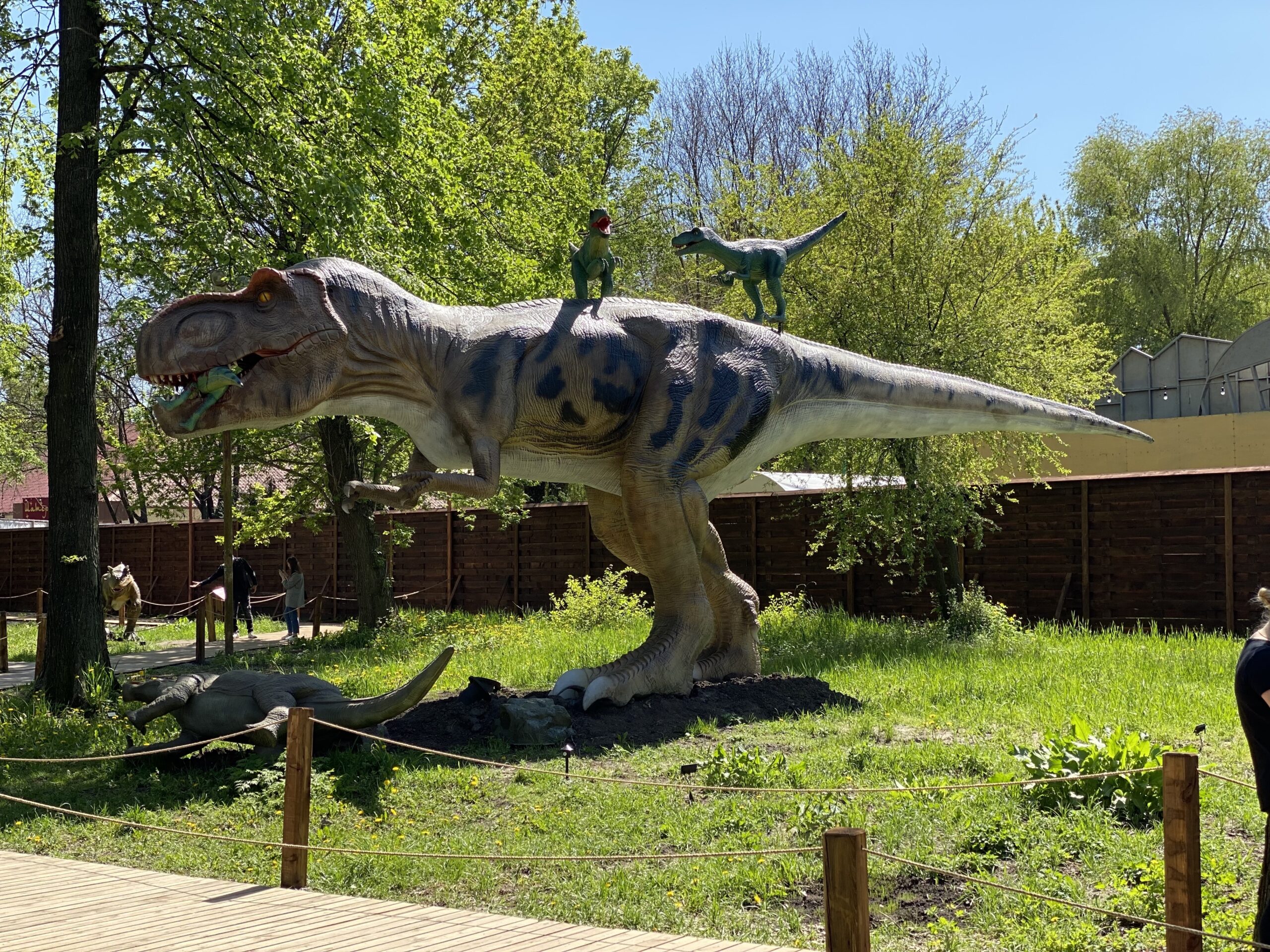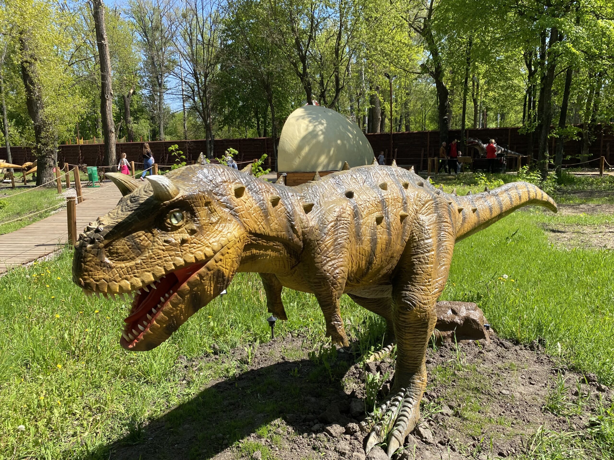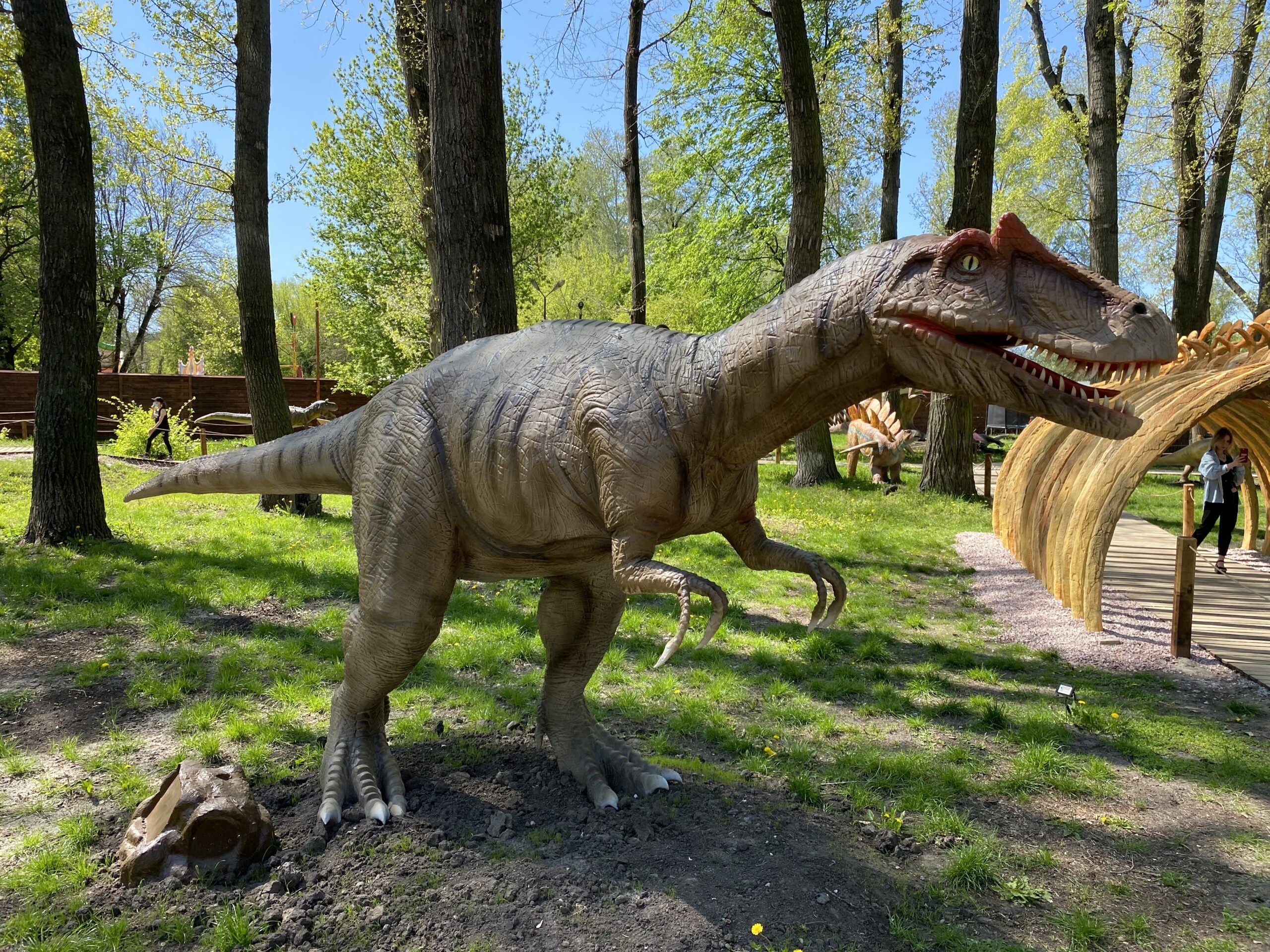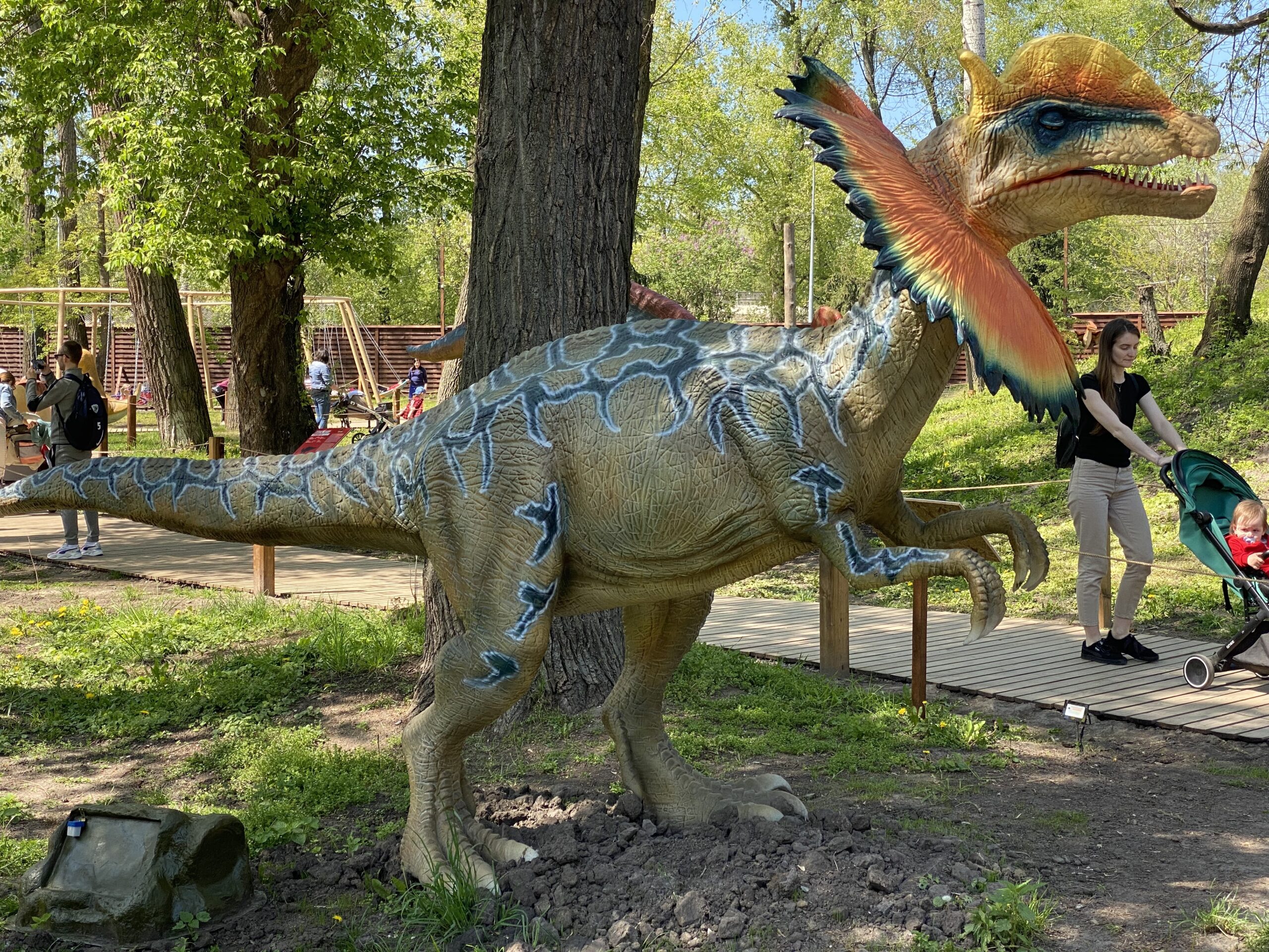 В Киеве на территории Гидропарка работает самый большой парк динозавров в Украине "Dинопарк". Посетителей на площади в 1,5 гектара ждут более 100 роботизированных фигур динозавров, животных ледникового периода реальных размеров, насекомые-гиганты.