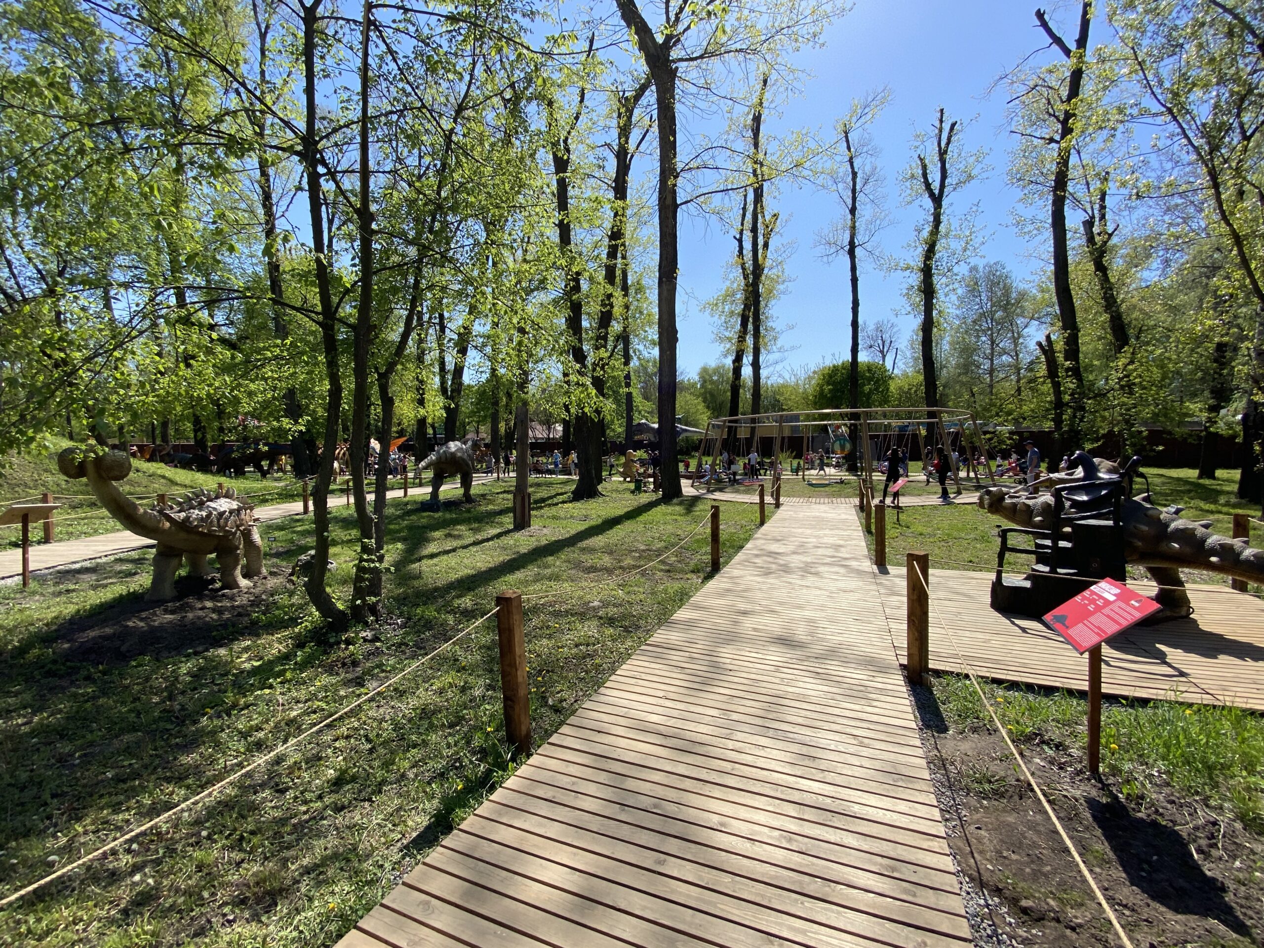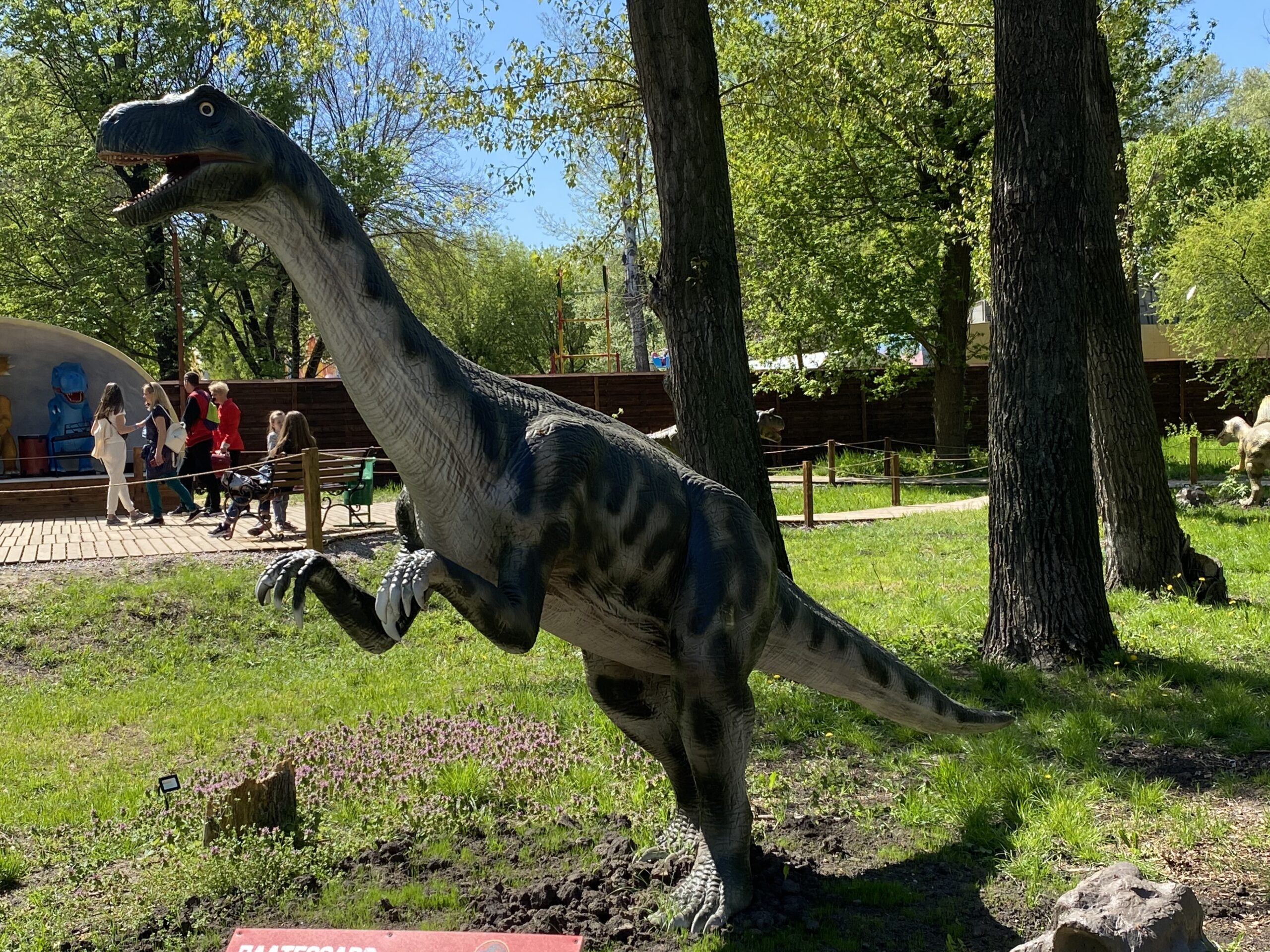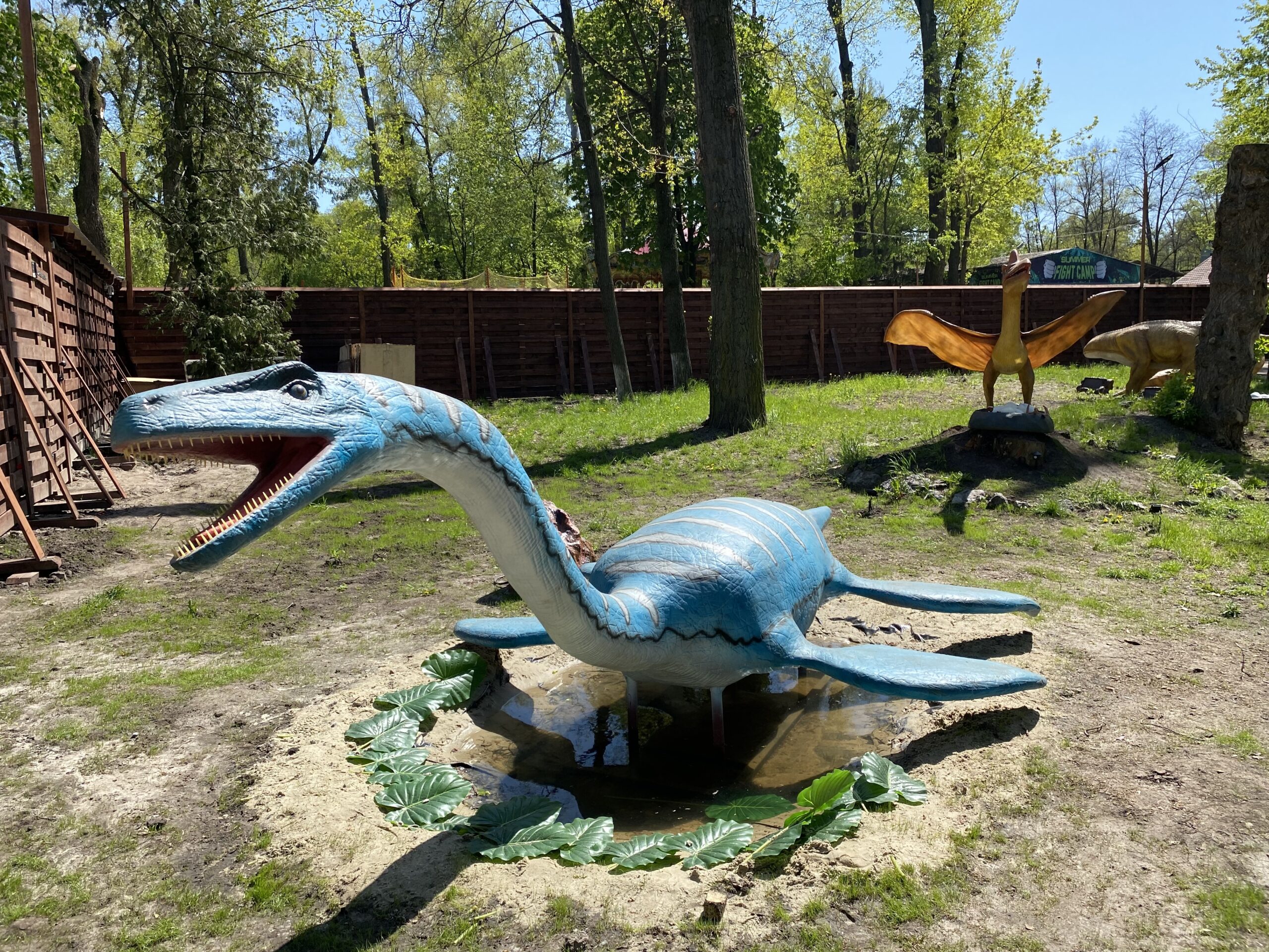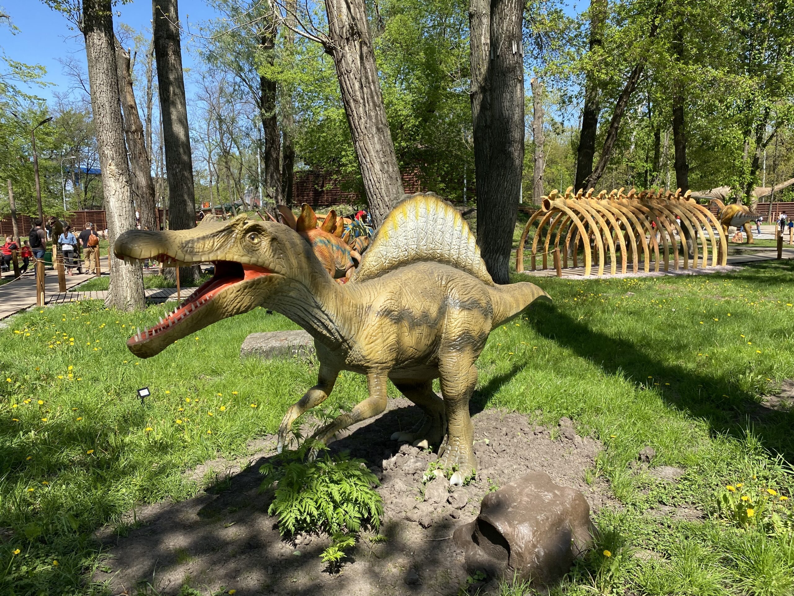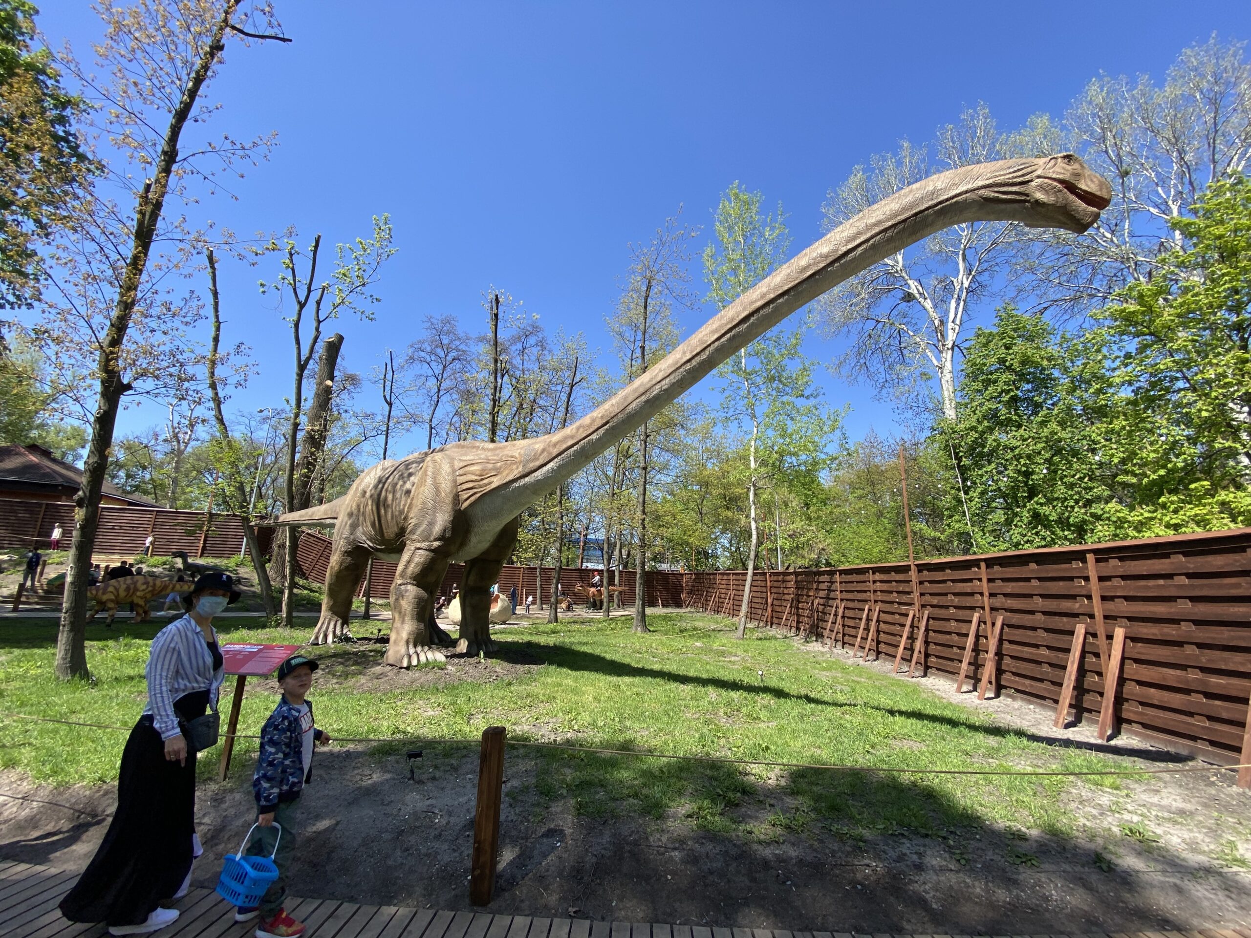 В Киеве на территории Гидропарка работает самый большой парк динозавров в Украине "Dинопарк". Посетителей на площади в 1,5 гектара ждут более 100 роботизированных фигур динозавров, животных ледникового периода реальных размеров, насекомые-гиганты.