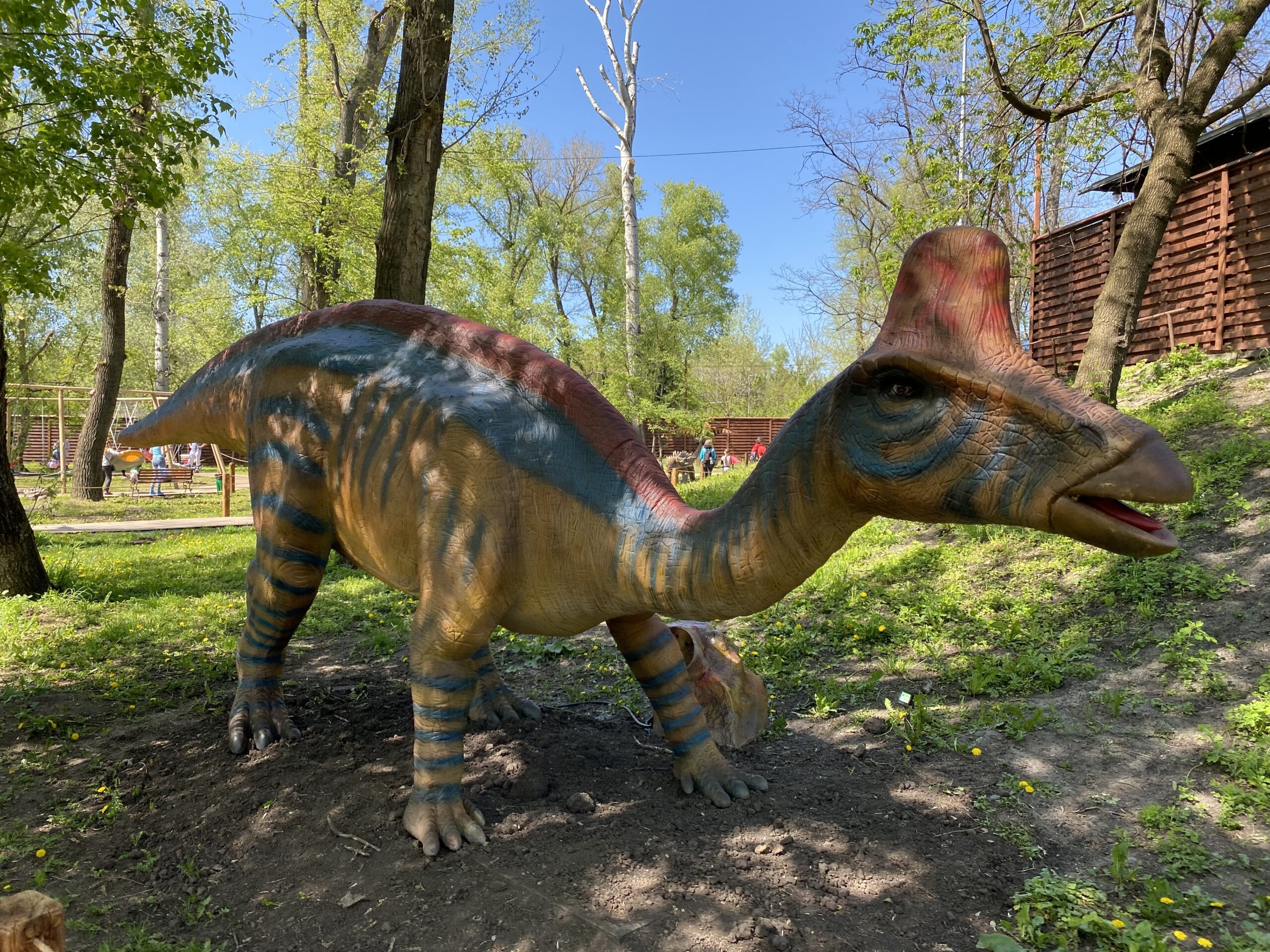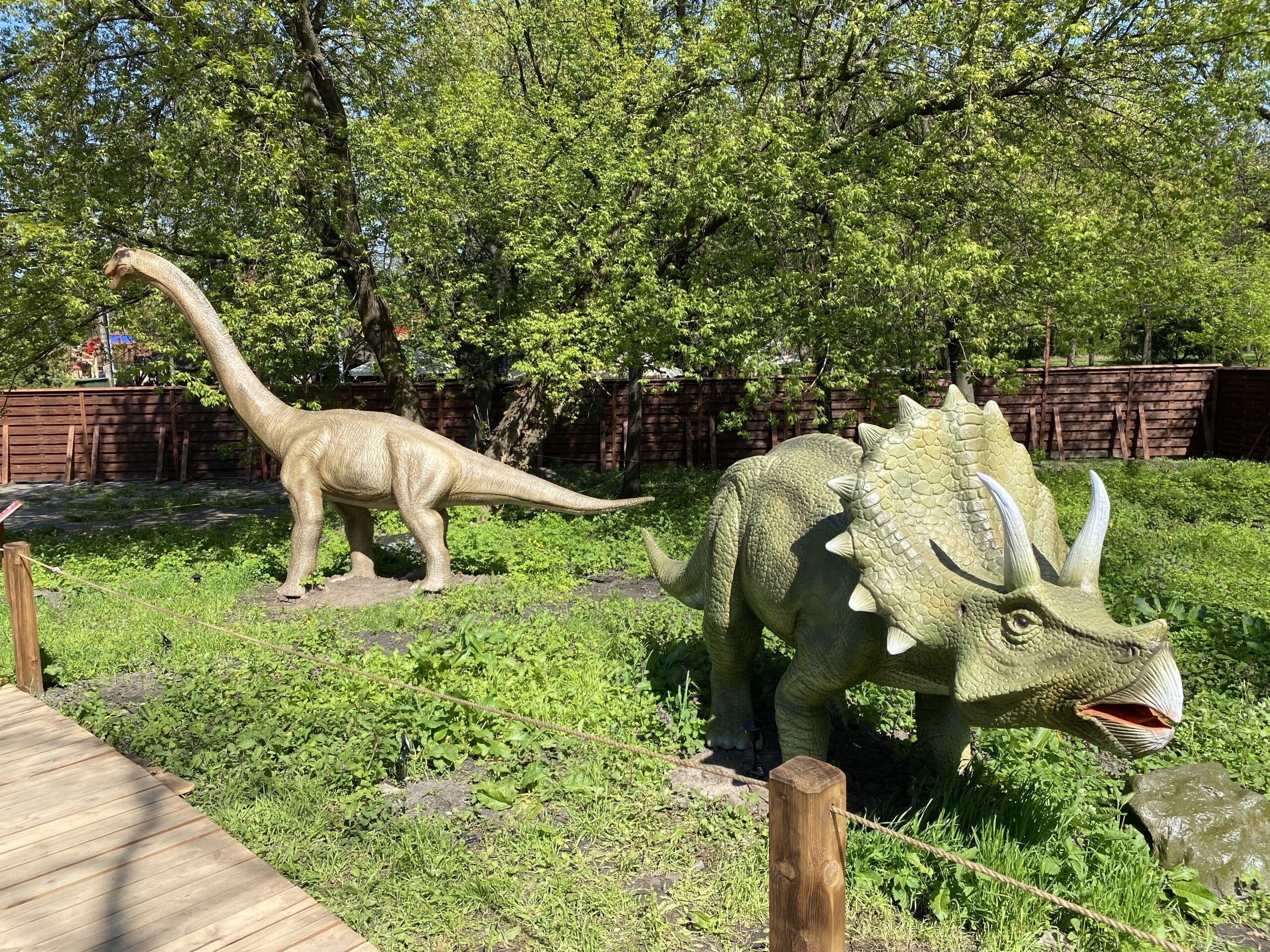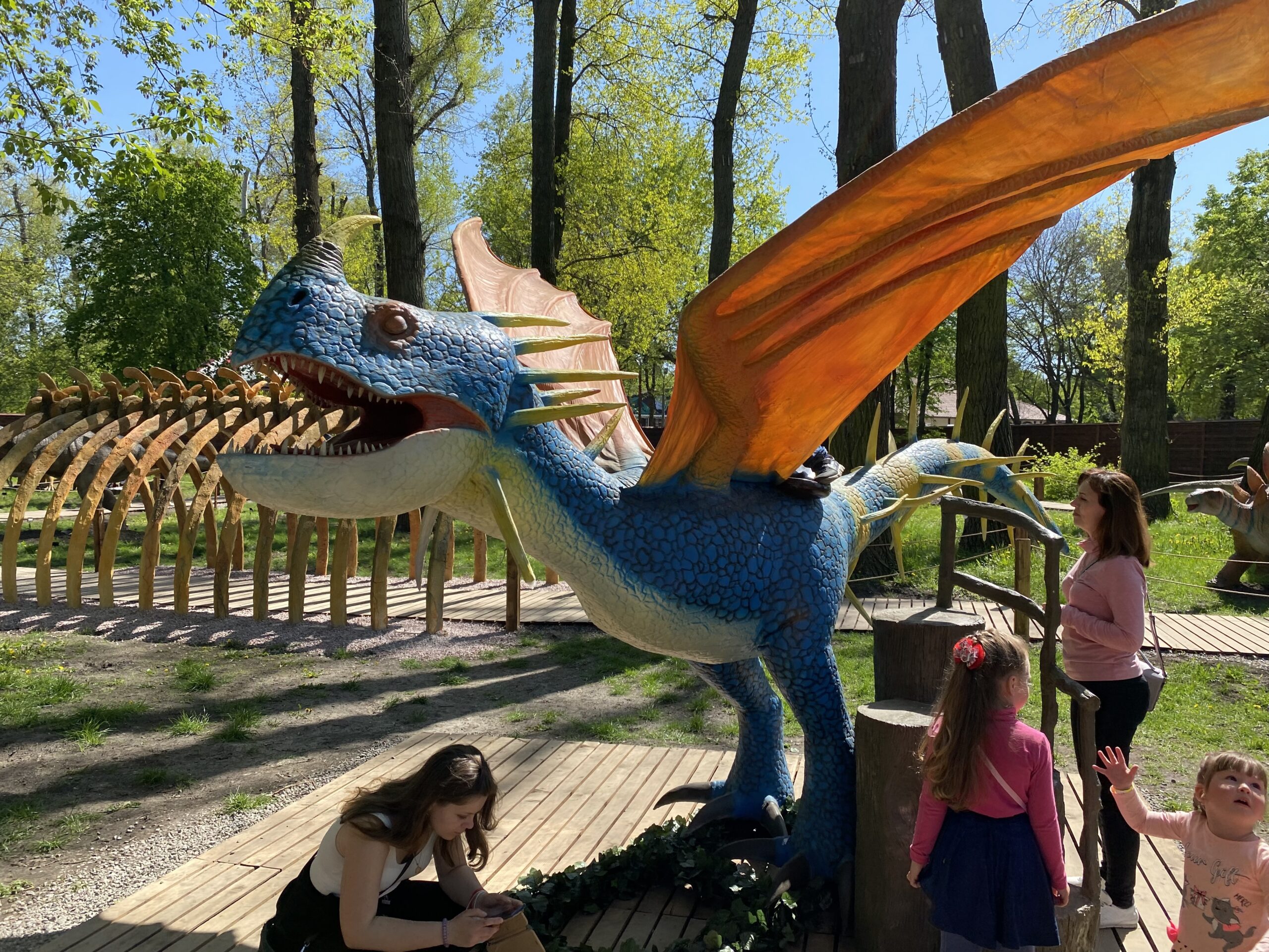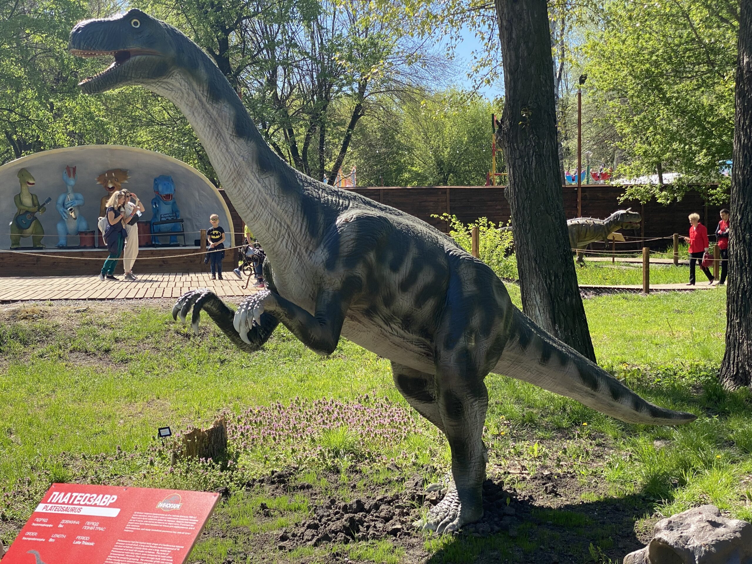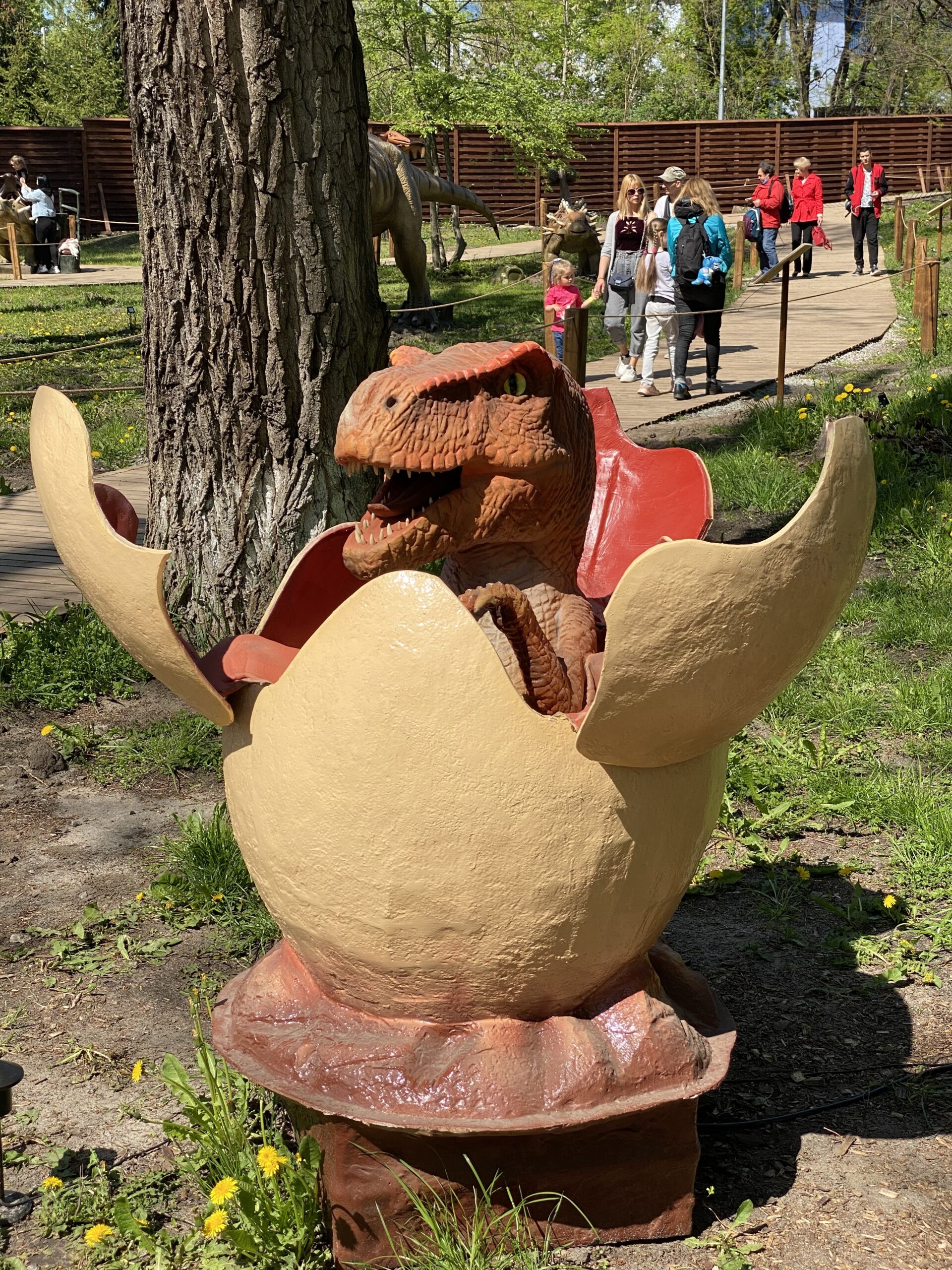 В Киеве на территории Гидропарка работает самый большой парк динозавров в Украине "Dинопарк". Посетителей на площади в 1,5 гектара ждут более 100 роботизированных фигур динозавров, животных ледникового периода реальных размеров, насекомые-гиганты.