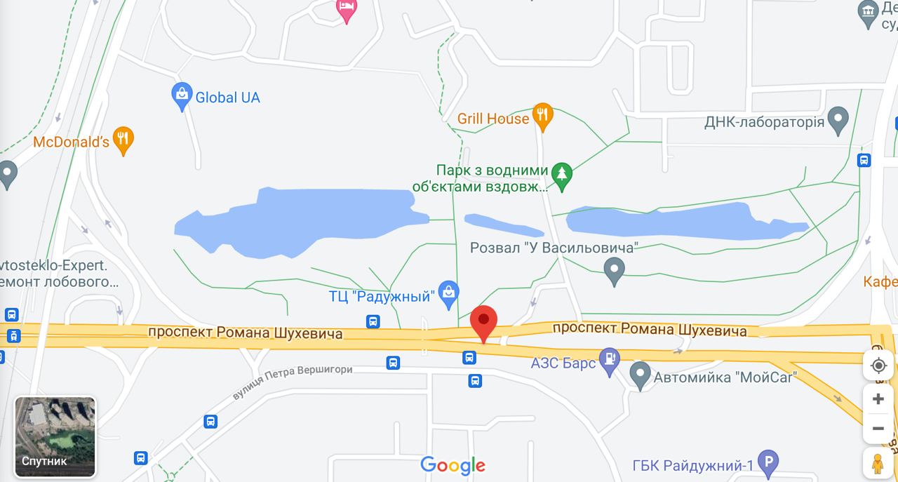 Ближайший адрес к центральному входу в парк "Троещина" - проспект Маяковского, 5.