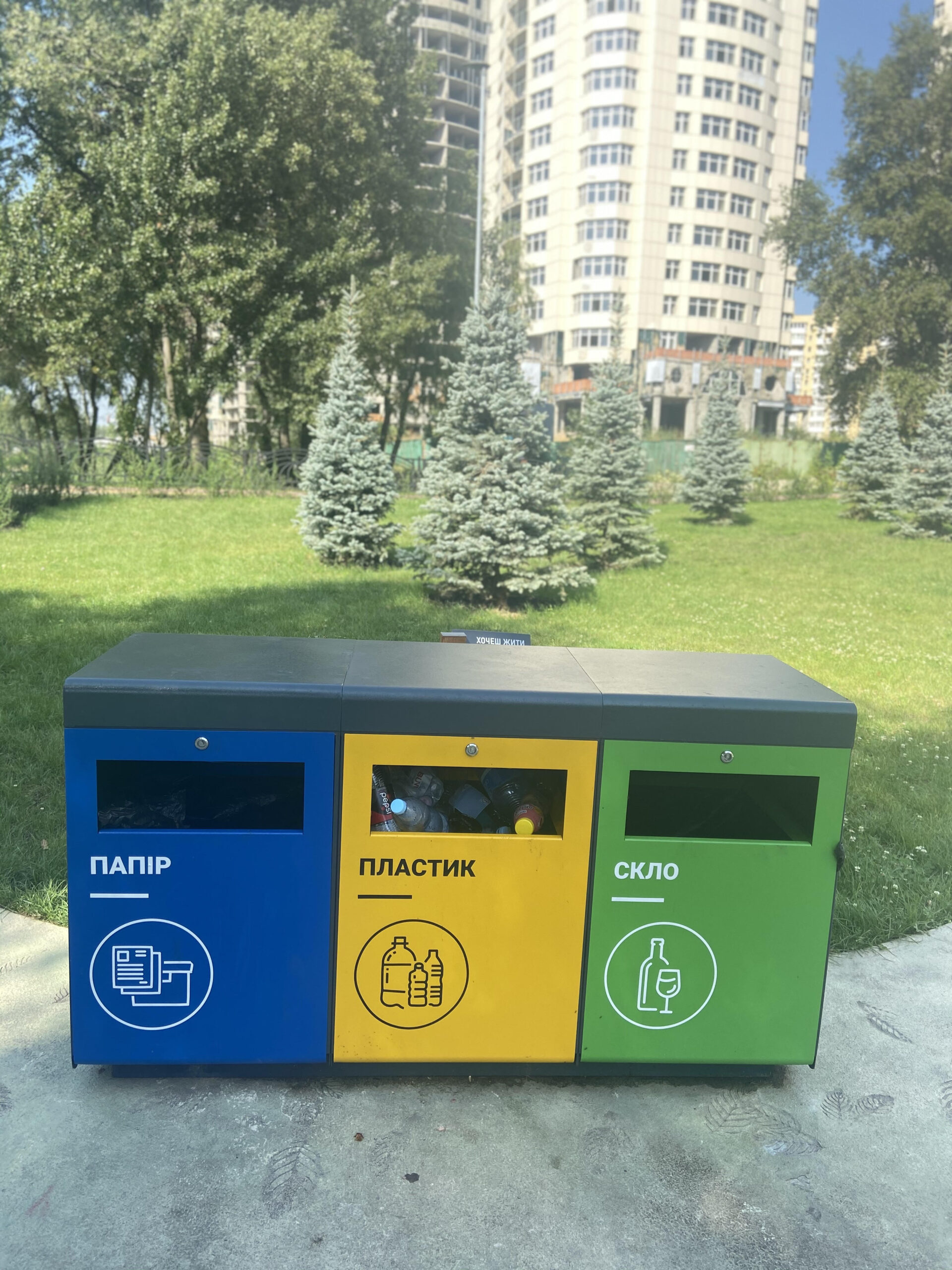 Центральный вход в новый парк на Троещине расположен со стороны проспекта Маяковского. У центрального входя большой арт-объект, надпись "Я люблю мой парк", согласно которому круглая площадка с белым велосипедом. Здесь начинается веломаршрут, который тянется параллельно центральной аллее.