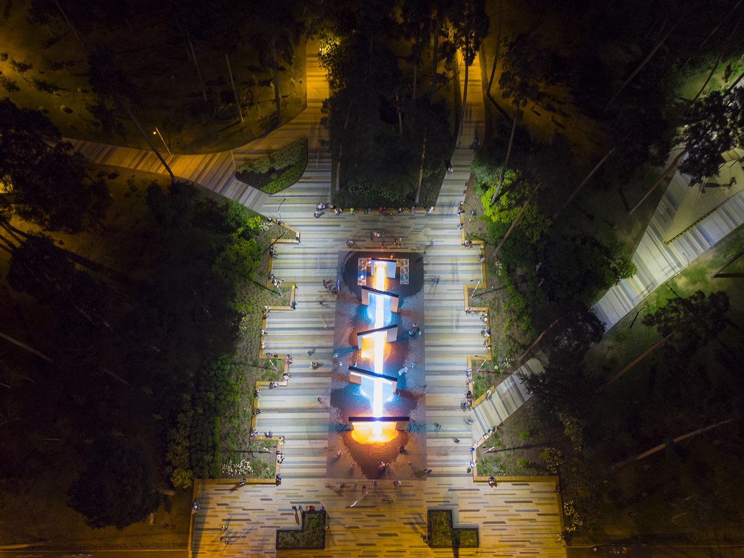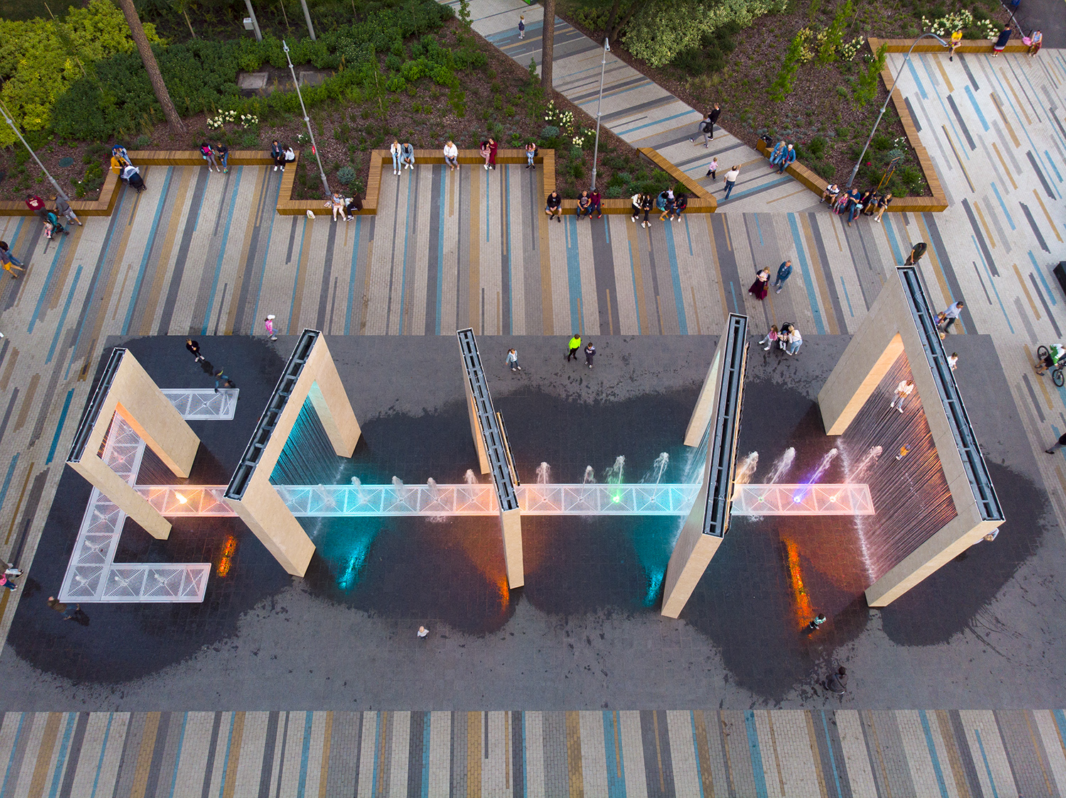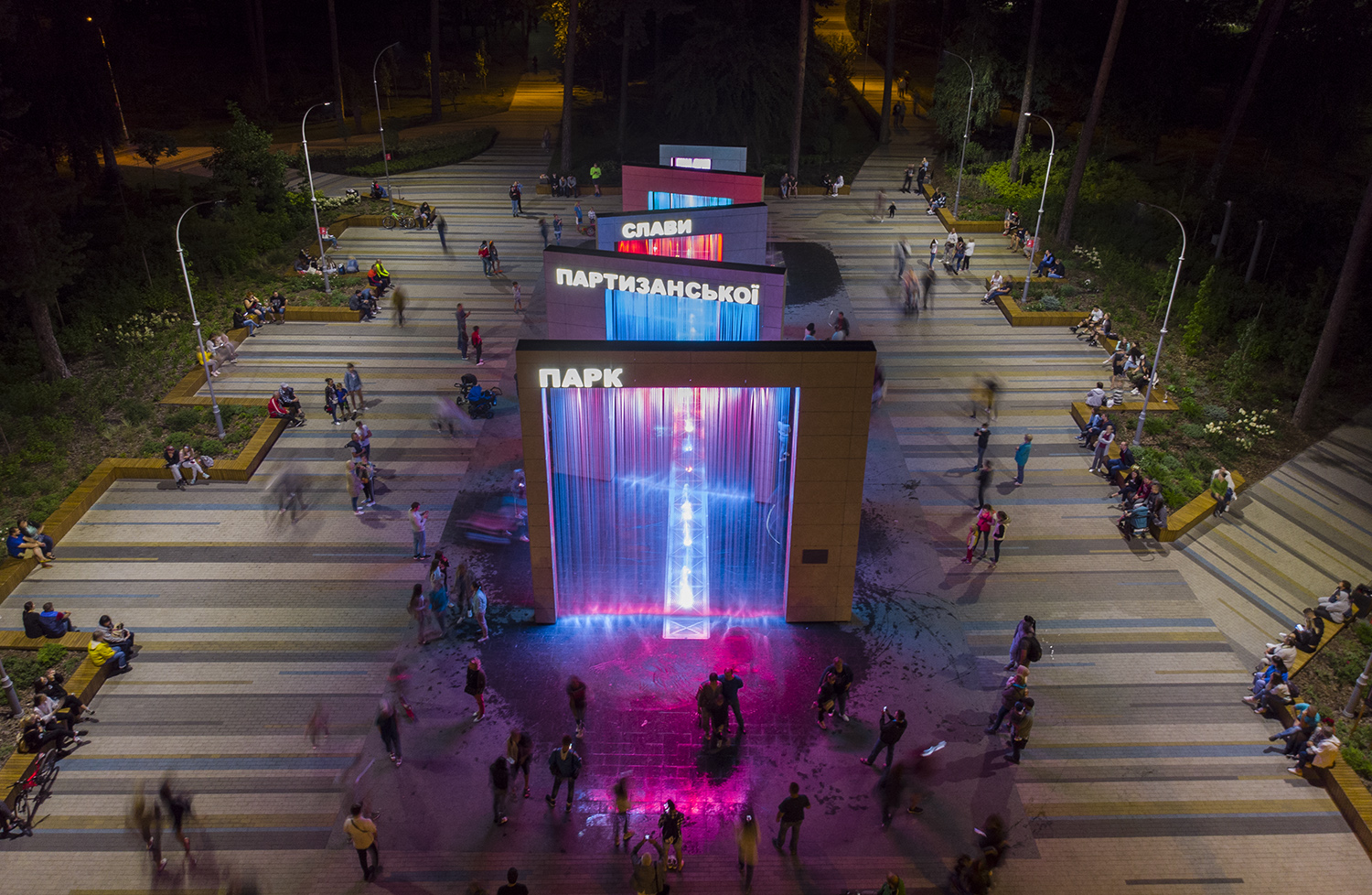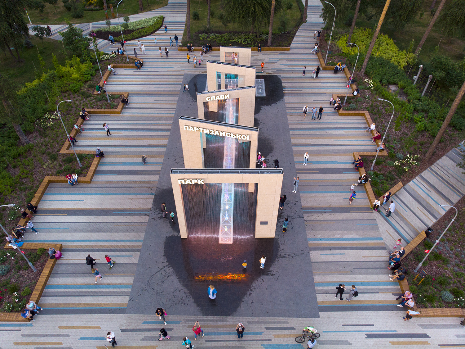 Парк уникален по своей природе. Его входная группа с пешеходным световым фонтаном - это пять арок высотой от 6 до 7,7 метра создают водопад, а между струями воды, поднимаются снизу, можно пройтись.