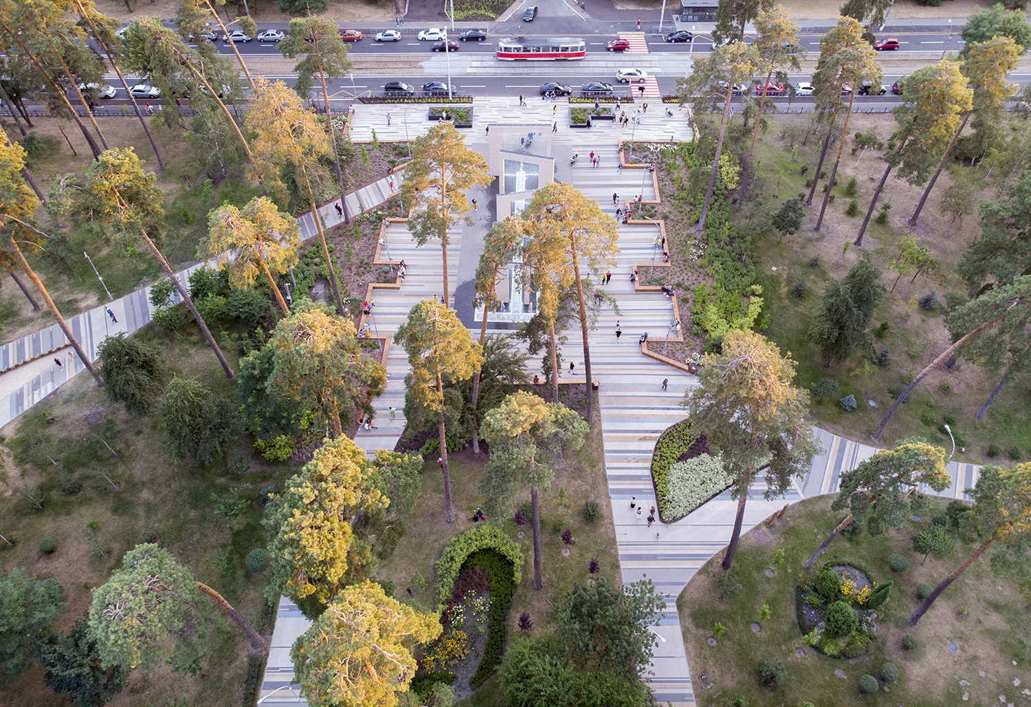 В июне прошлого года в Сырецком парке, который расположен на улице Парково-Сырецкая, открыли новый фонтан - светомузыкальный пешеходный интерактивный фонтан. Также в парке планировались современная сцена и танцпол.