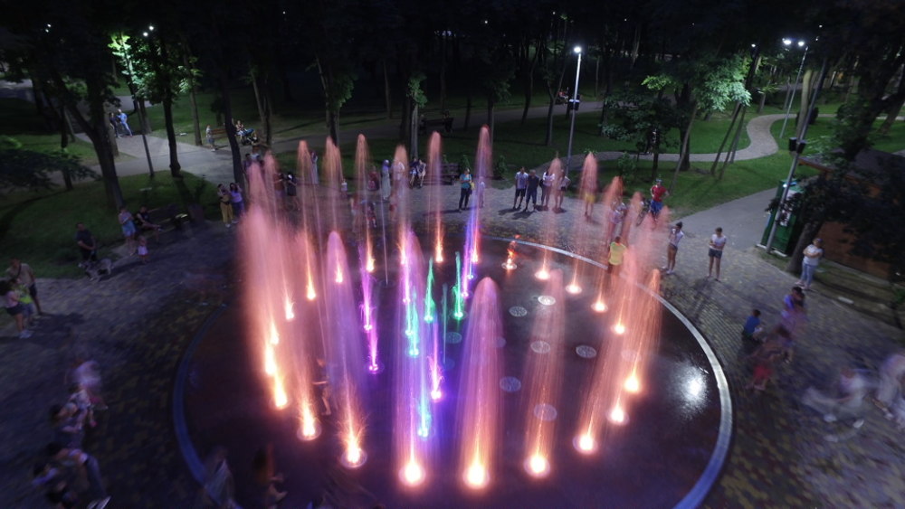 Фонтан обустроили по современным стандартам. Динамические струи воды подсвечиваются. Управление фонтаном полностью автоматизировано. Есть датчики уровня и долива воды, автоматическая станция дозирования реагентов, которые обеззараживают воду.