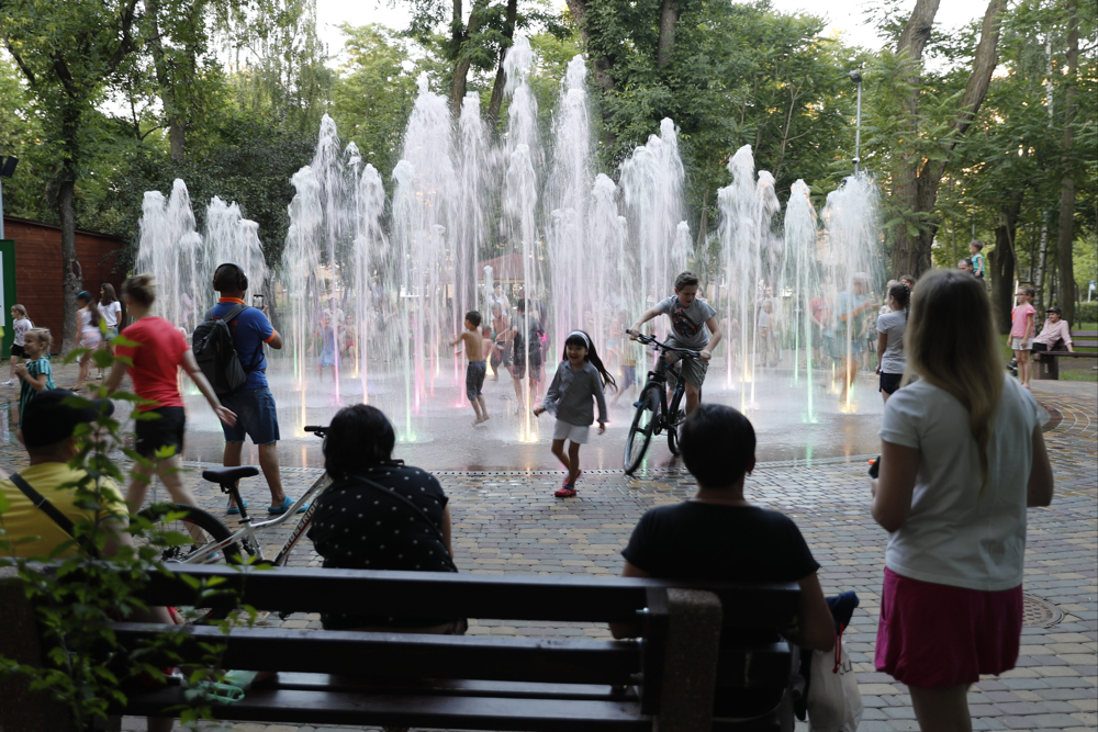 Поскольку Сырецкий парк - место семейного отдыха, то струи воды "танцевать" в такт детским песням и подсвечены.