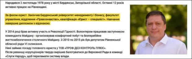 В ноябре 2019 года экс-парламентарий Игорь Мосийчук на своем телеграм-канале сообщил, что “слуга народа” в 1990-е годы был осужден и отбывал наказание за изнасилование несовершеннолетней.
