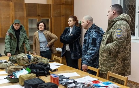 Калмыкова производит проверку аптечек для военных