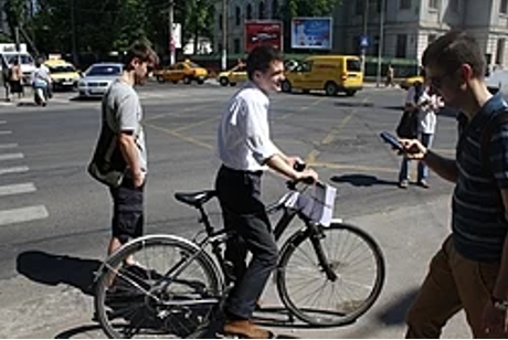 Дан на велосипеде агитирует за свою кандидатуру. Выборы мэра, Бухарест, 2012 год