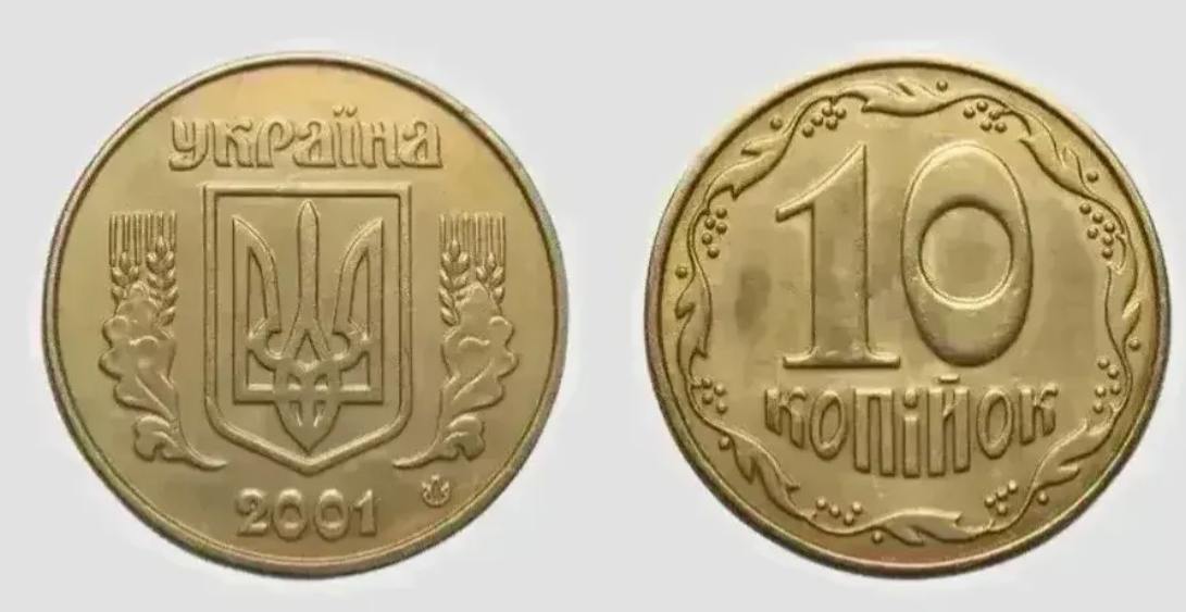 10 копеек в 2001 году стоит более 1000 грн. Ее цена достаточно высока из-за малого тиража, поскольку таких 10 копеек отчеканили только 5 тысяч штук.