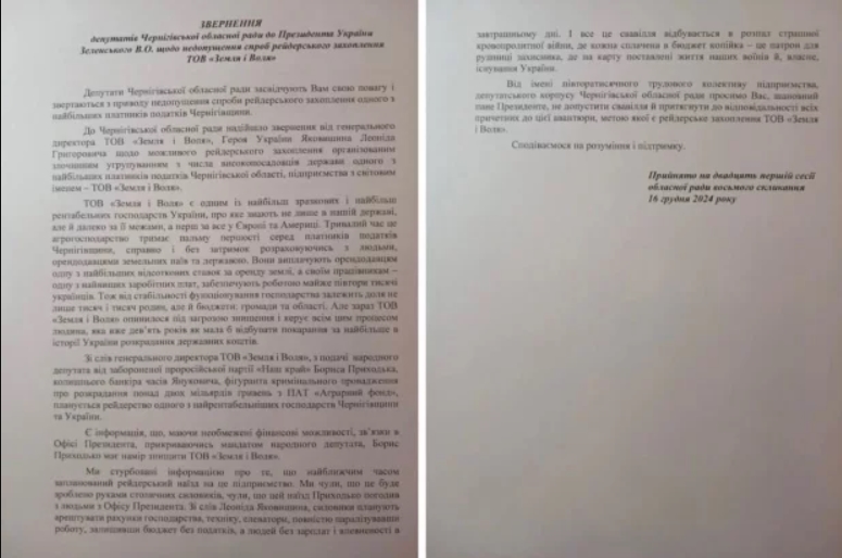 Одной из мишеней стал крупнейший налогоплательщик Черниговщины, аграрный гигант «Земля и Воля». Как утверждает владелец предприятия, Герой Украины Леонид Яковишин, помогает Приходько еще один нардеп Павел Халимон.
