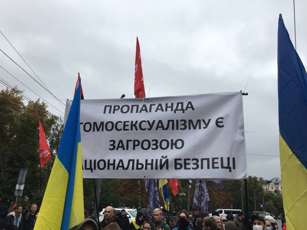 Тем временем в Киеве собрались также активисты движения "Традиция и порядок", которые выступают за "традиционные семейные ценности". Между ними и активистами ЛГБТ были выставлены кордоны полиции.