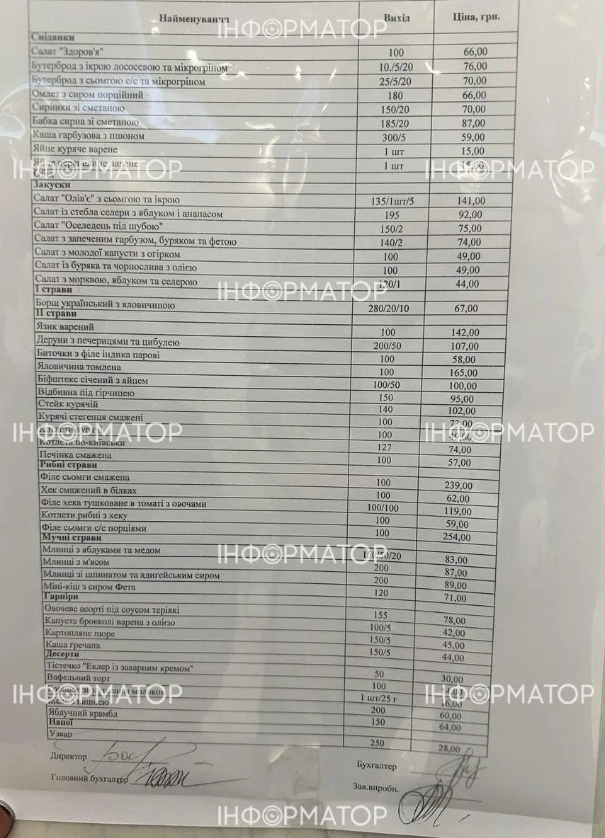 В этом убедились журналисты. Еда обычная, без особых деликатесов. Цены тоже довольно низкие. Здесь предлагают завтраки, например, омлет за 66 гривен, вареное яйцо за 15, бутерброд с икрой за 76 грн или творожники за 70.
