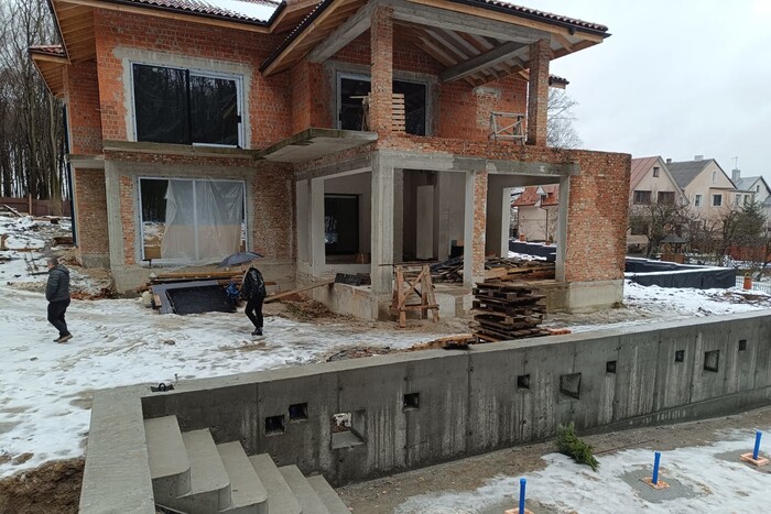 По словам соседей, летом 2023 здесь продолжались активные строительные работы, которые прекратились в начале зимы, когда семья Гринкевичей оказалась в центре коррупционного скандала. При этом это имение не зафиксировано в реестре недвижимости, поэтому в рамках уголовного производства арест на это имущество не наложен.
