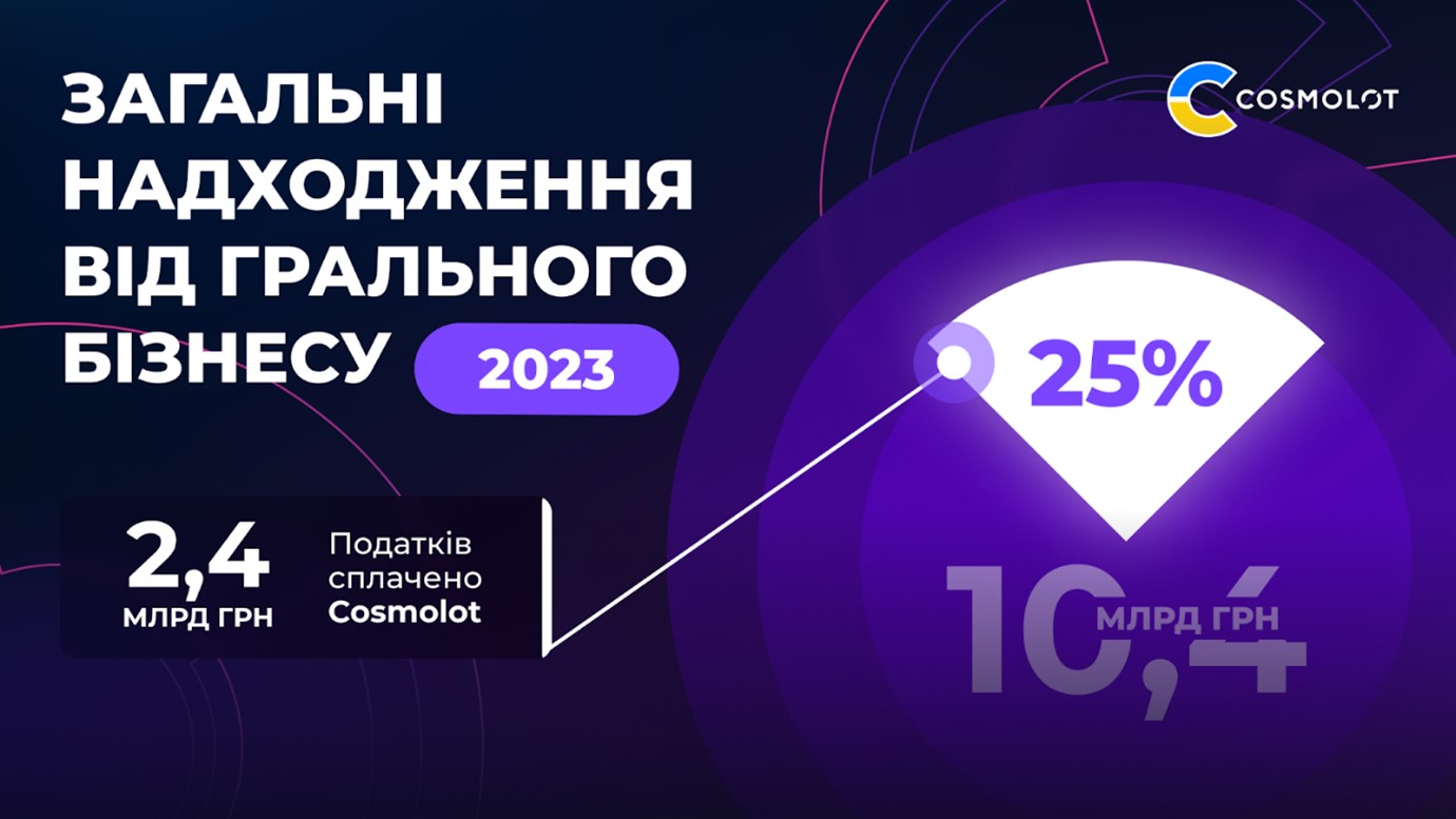 Cosmolot является одним из крупнейших налогоплательщиков в Украине. Только за 2023 год компания принесла бюджету более 2,4 млрд грн, что составляет почти 25% от всех поступлений игровой сферы.