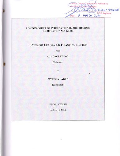 В суд в Лондоне "Фокстрот" подал иск в марте 2022 года и уже через два года получил соответствующее решение о своей правоте. В ходе арбитражного разбирательства Николай Лагун выдвинул несколько основных возражений против иска. Мол, требования просрочены в соответствии с шестилетним сроком исковой давности согласно английскому праву. Однако Суд отклонил эти аргументы, поскольку на личные поруки (и погашение кредитов по ним) распространяется более длительный 12-летний срок исковой давности. Кроме того, Лагун подвергал сомнению действительность своих подписей на поруках, утверждая, что они не были должным образом удостоверены или что он фактически их не подписывал. Трибунал рассмотрел доказательства, включая свидетельские показания, и пришел к выводу, что подписи Николая Лагуна на поруках были должным образом удостоверены и отвечают требованиям. Ряд других аргументов защиты Лагуна суд также отклонил.