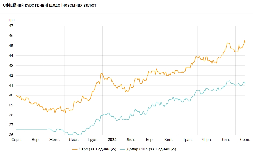 По данным НБУ, на 16 августа 2024 года курс доллара установлен на уровне 41,1382 грн, что на 18,80 копеек ниже, чем днем ранее.