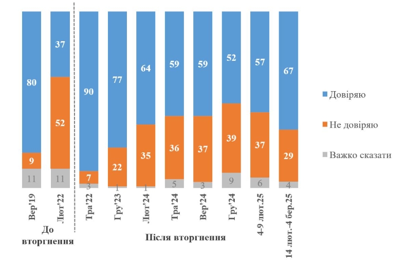 Об этом свидетельствуют данные опроса КМИС, проведенного с 14 февраля по 4 марта 2025 года.