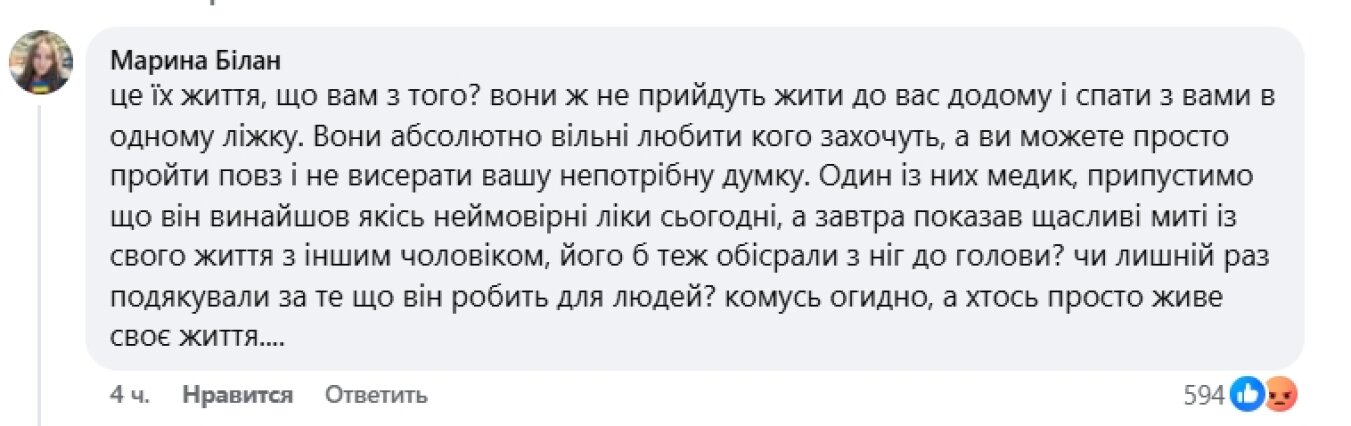 «Я категорически против тех, которые выставляют свои нетрадиционные отношения напоказ, таким образом, пропагандируя/романтизируя неестественные отношения и оскорбляя чувство верующих и тех, кому просто неприятно на это смотреть. А СМИ ради хайпа это распространяют и масштабируют».