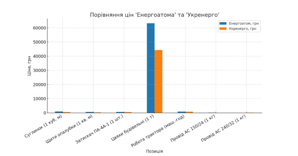 В этот же период "Энергоатом" заключил договор на реконструкцию электроподстанции стоимостью 64,53 млн грн с компанией "Атоммонтажсервис". Сравнение смет показало, что цены "Энергоатома" выше "Укрэнерго" по ряду позиций.