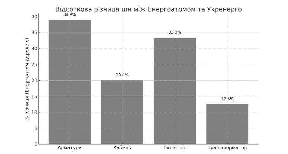 Процентная разница цен между "Энергоатомом" и "Укрэнерго"