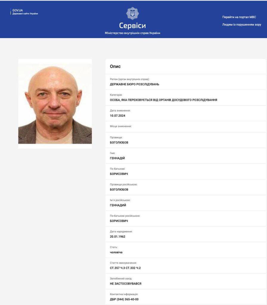 Аналогично, сегодня разыскивается еще один фигурант дела "ПриватБанка" - Геннадий Боголюбов .